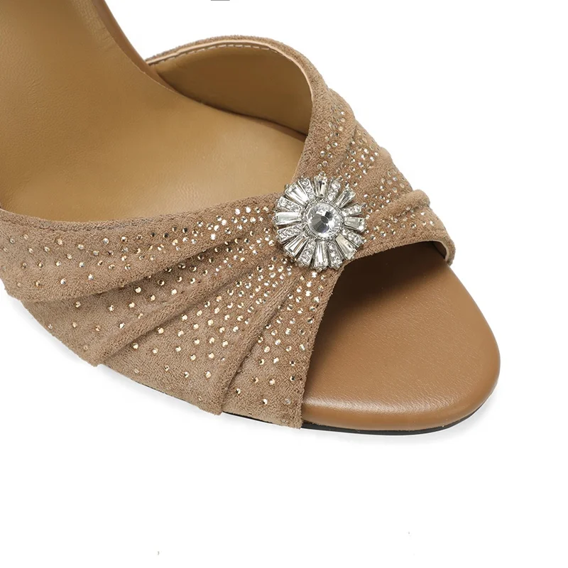 Moncheer Women's Rhinestone Peep-Toe Stiletto Heels Ankle Strap Lightweight Anti-Slip Summer Party Sandals Customizable OEM/ODM