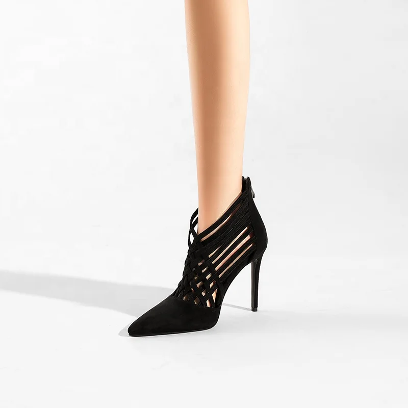 Moncheer Women's Cutout Faux Suede Stiletto Heels Pointed Toe Lattice High Heel Pumps with Back Zipper Customizable Fashion Shoe