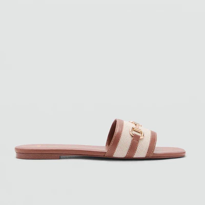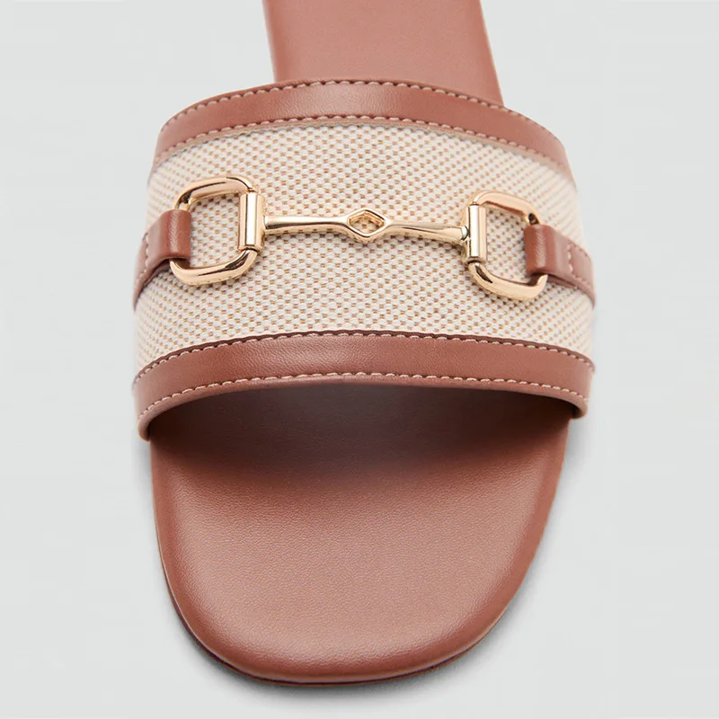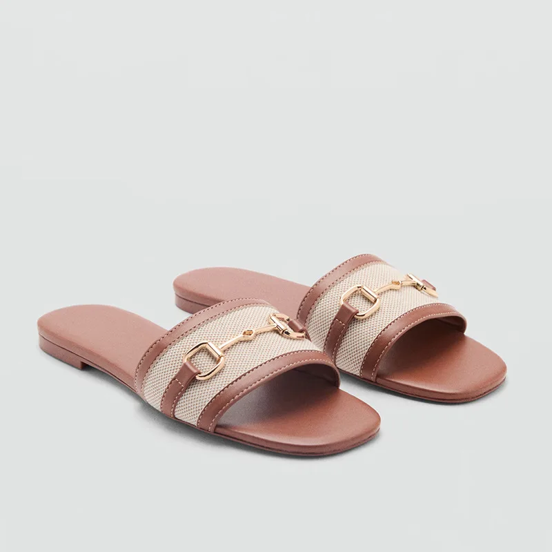 Women's 2026 Summer Outdoor Flat Casual Sandals Color-Blocked Slip-On with Metal Buckle Fashion Trend Versatile New Style
