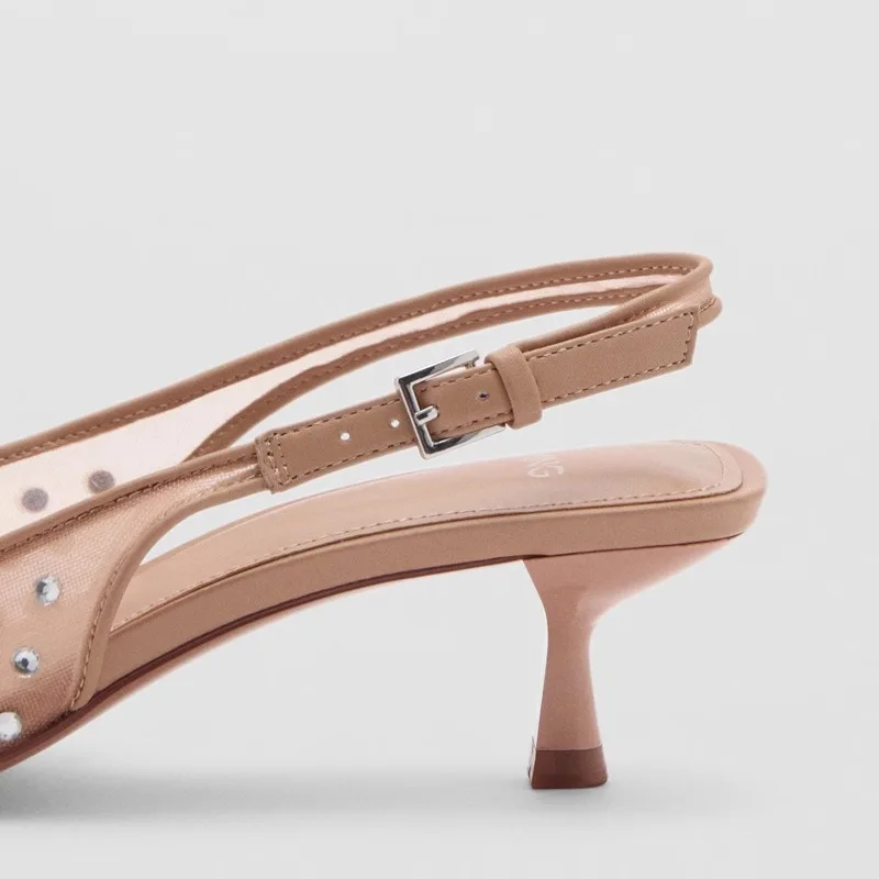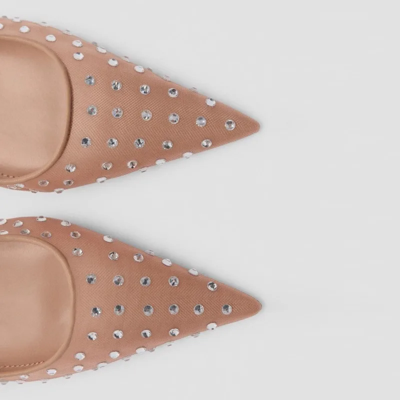 2026 New Summer Style Open Toe for Women Pointed Toe Mules Shallow High Heel Thin Heel Lace-Up Mesh Back Strap Outdoor Usage