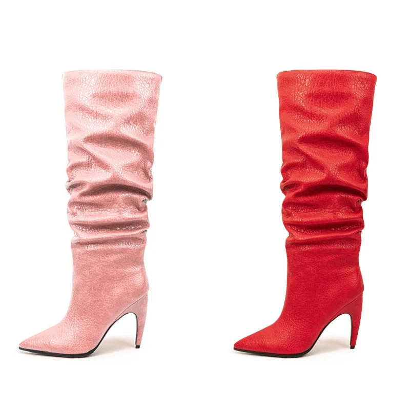 Luxury Fashion Women's Shoes Knee High Boots Custom Pointed Toe High Heels Large Size 35-47 Mid-Calf High-Heeled Knee-High Boots