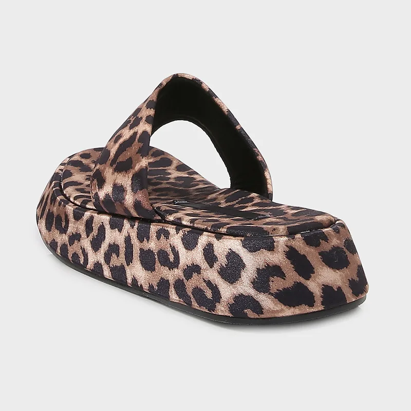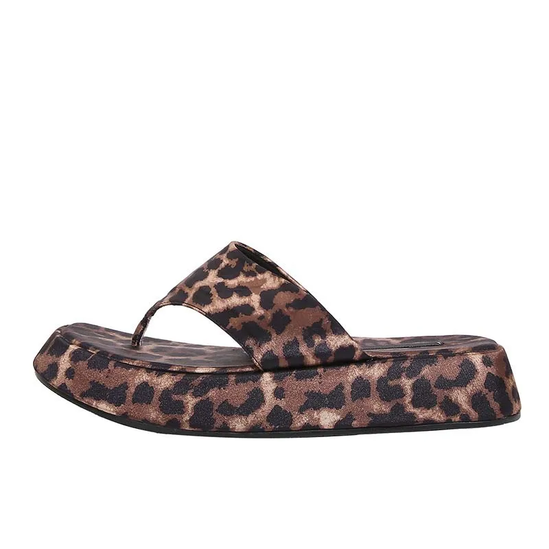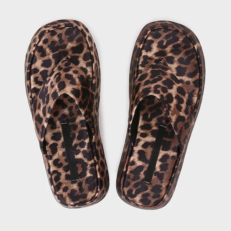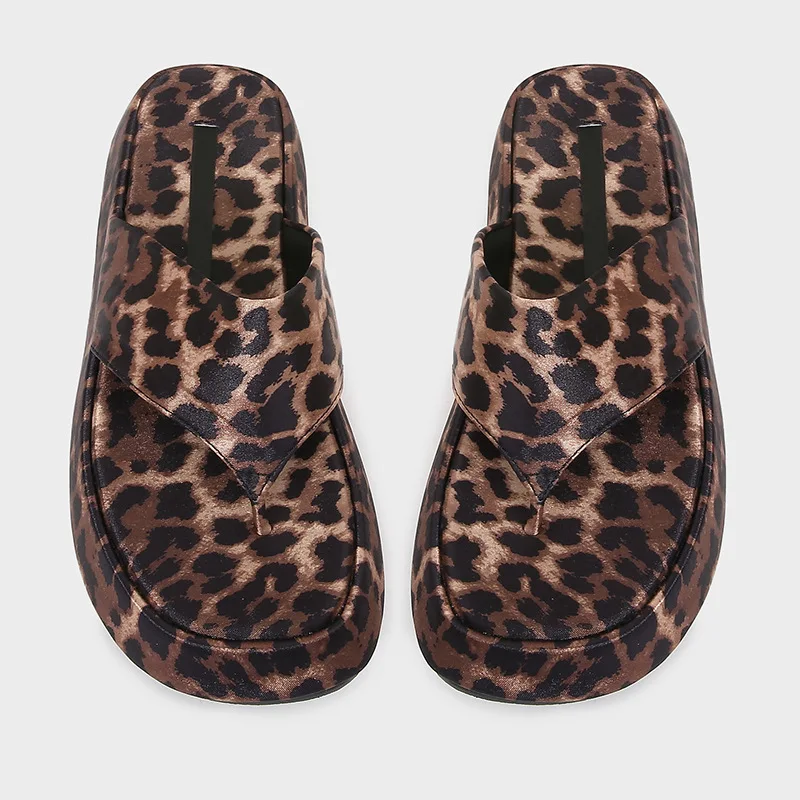 ZA2026 Women's Leopard Print Open Toe Summer Sandals Thick Sole Flip Flops with Platform Casual Flat Design