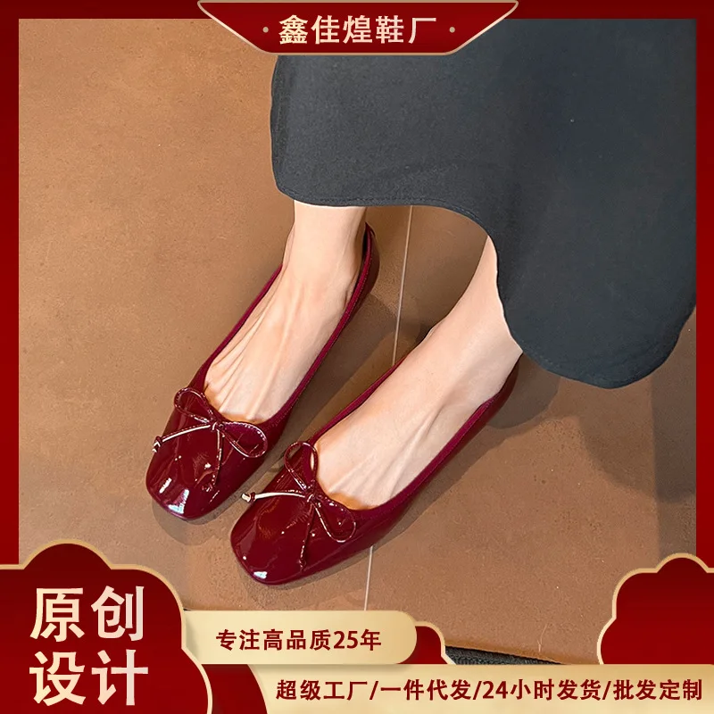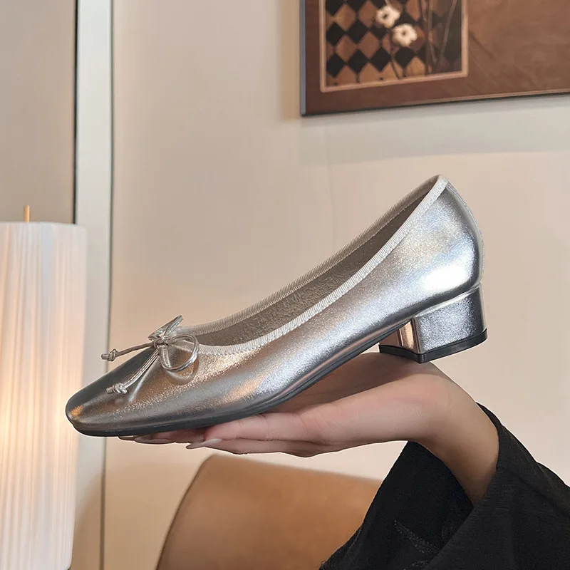 5318-1 Comfortable Treasure Super Soft Bow Office Shoes Women's Square Heel Medium Heel PU Upper Rubber Outsole Spring Autumn
