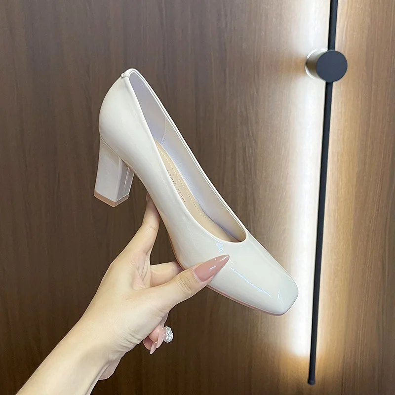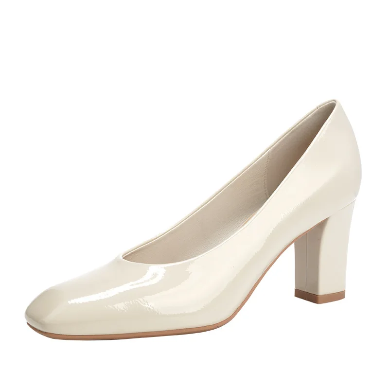 Bejani 3266-1 French Temperament Beautiful Women's Square Toe Thick Heel Super High 8cm+ Height Increasing Commuter Shoes Patent