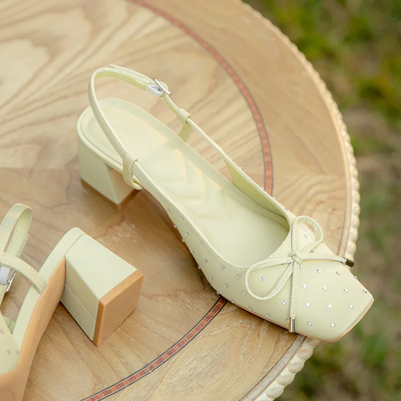 Source Factory Cross-border Custom Mary Jane Shoes Women's Thick Heel square Bow Back Super High Heel Summer High Top Sandals