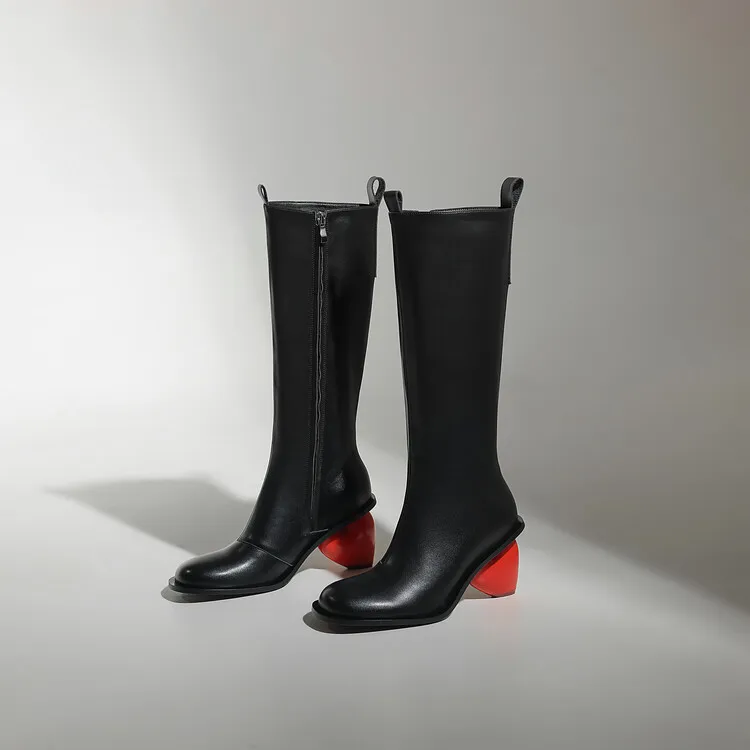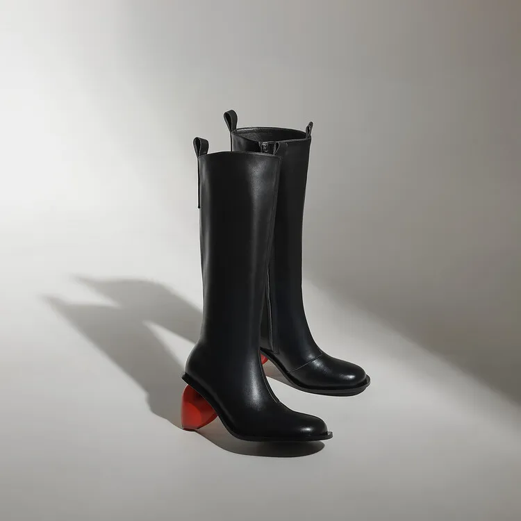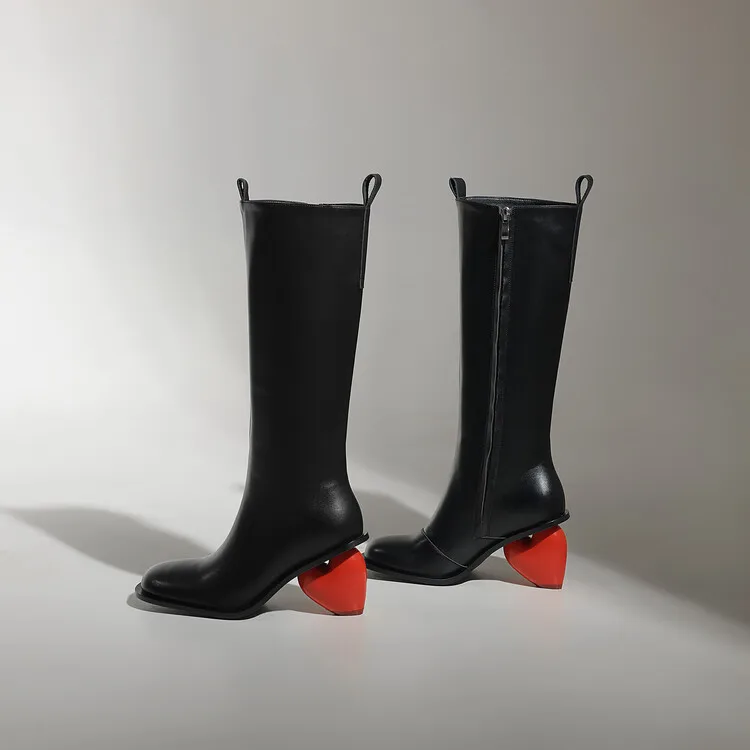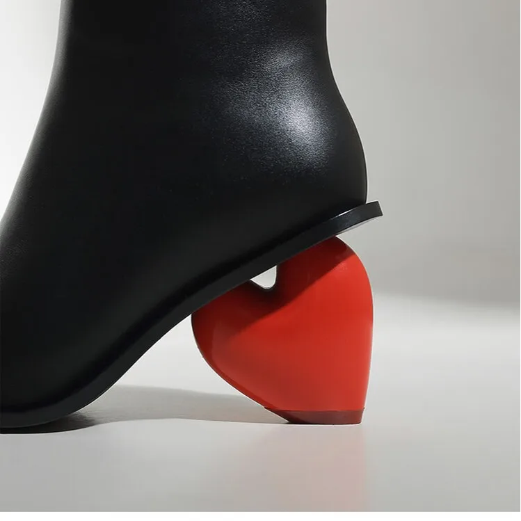Fashion Women's Black Sequined Cloth Mid-calf Boots Red Heart Heel Height Increasing Winter Unique Design Party Club Shoes for