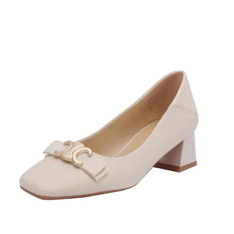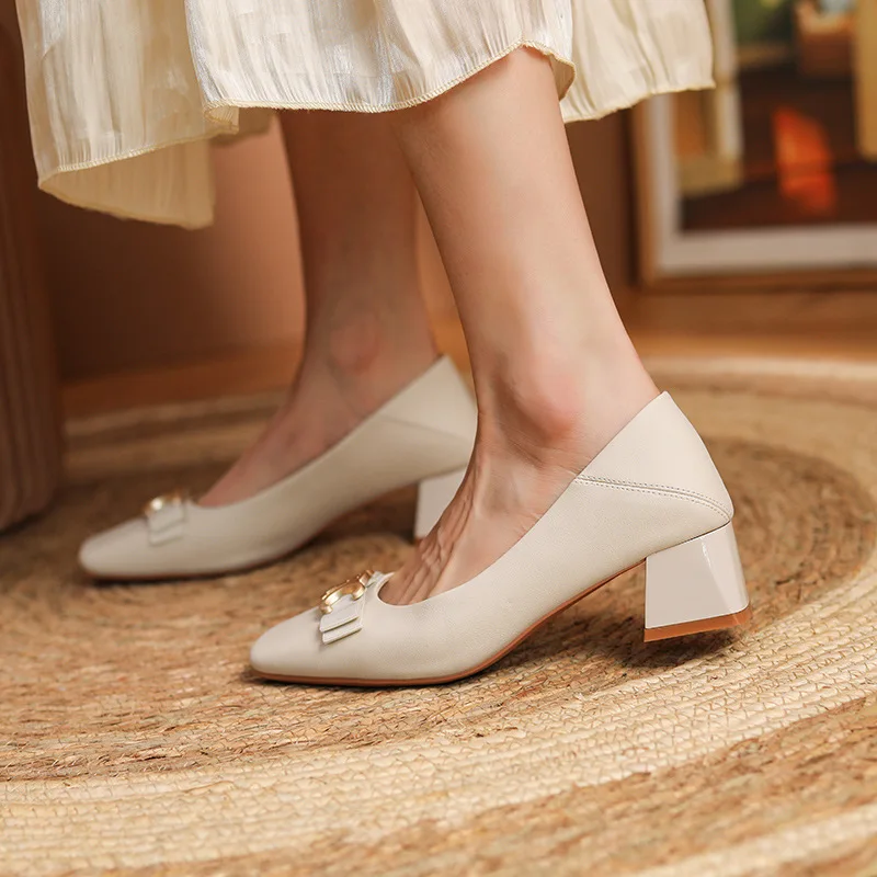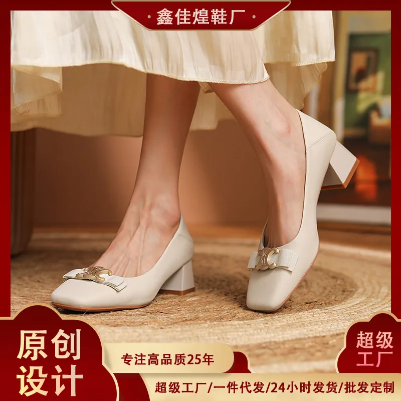 332-28 Soft Work Shoes Autumn Thick Heel High Heels Small Fragrant Style Temperament square Head Slip-on Bridal Shoes