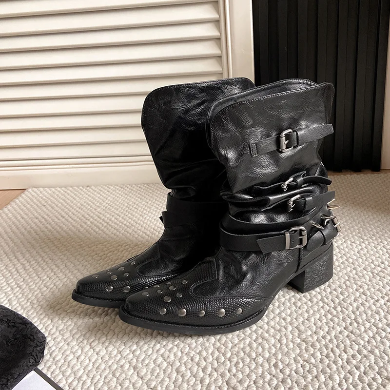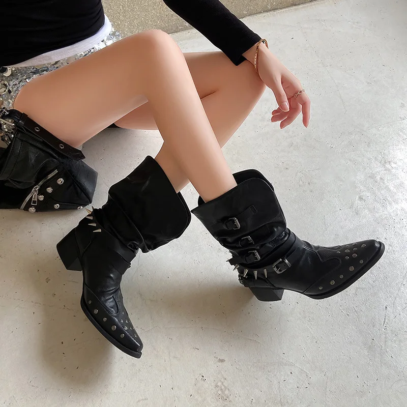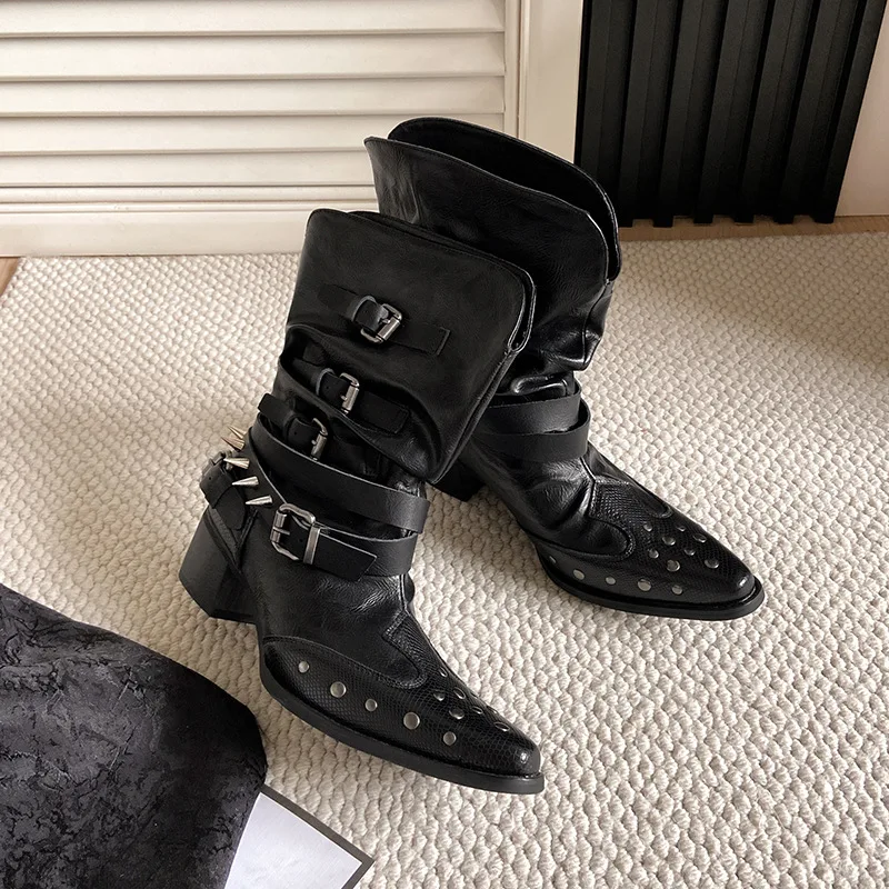 Women's Waterproof Breathable Fashionable Summer Autumn Spring Hard-Wearing PU Upper High Heels with Pointed Toe Trendy Styles