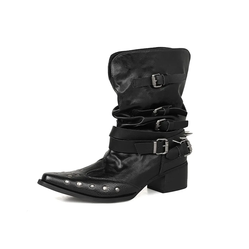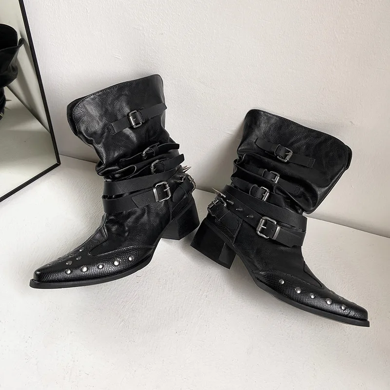 Women's Punk Black PU Ankle & Bootie Boots Slip-On Closure Pointed Toe Super High Heel Height-Increasing Edgy Rock Streetwear