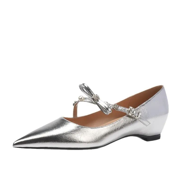 6318-13 French Silver Elegant Small Leather Summer Lace-up Shoes Inner Height Increasing Women's Wedge Heel Pointed Toe Buckle