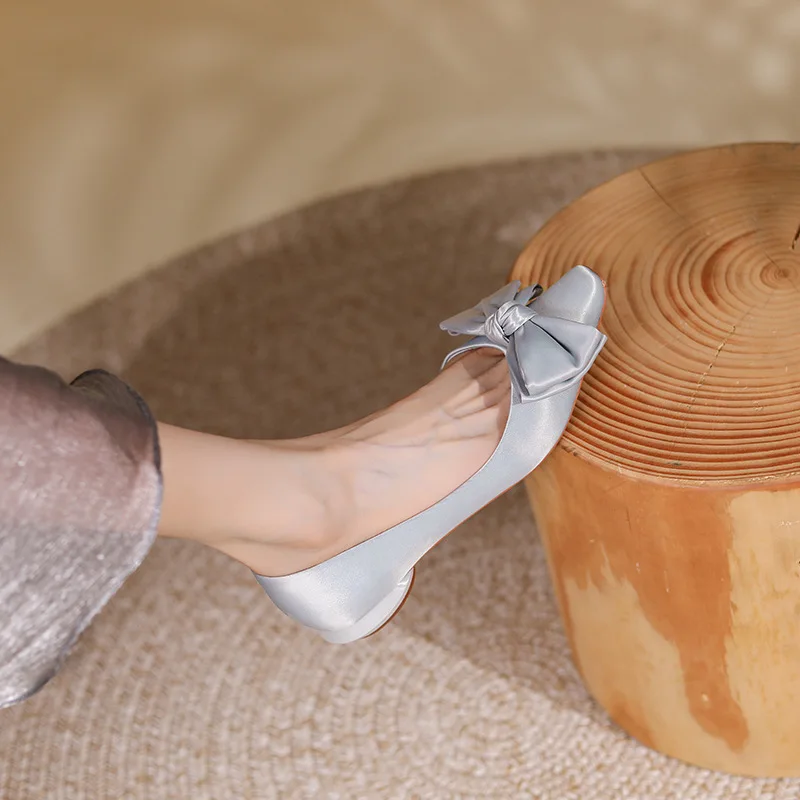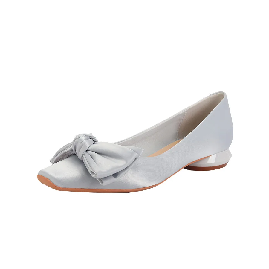 OEM/ODMSatin Square Toe Breathable Slip-On Women's Shoes Thick Heel Low Heel Flat Spring Autumn Soft Professional
