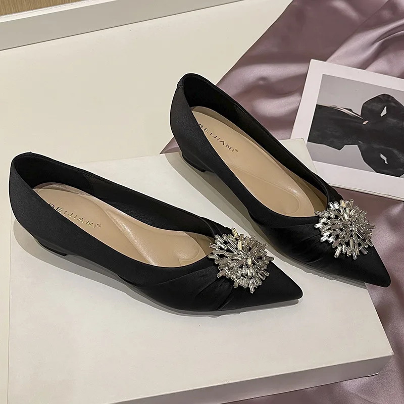 OEM/ODM Women's Summer Platform Slip-On Wedge Heel Pointed Toe Satin Shoes