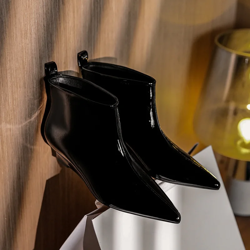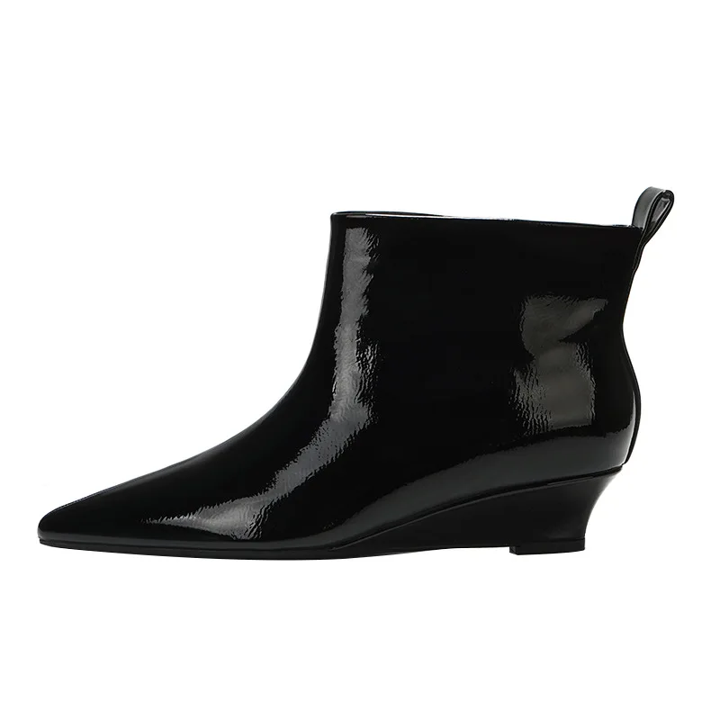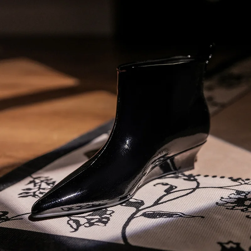 OEM/ODMPointed Toe ZIP Closure Ankle & Bootie Wedge Heel Height Increased Patent Leather Chelsea Boots Women's Spring Autumn