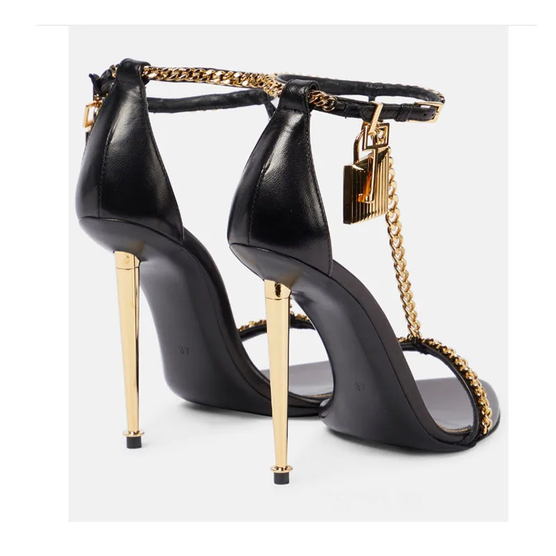 Luxury Black Microfiber Leather Breathable High Top Open Toe Summer Outdoor Buckle Strap Sandals Super High Thin Heels for Women