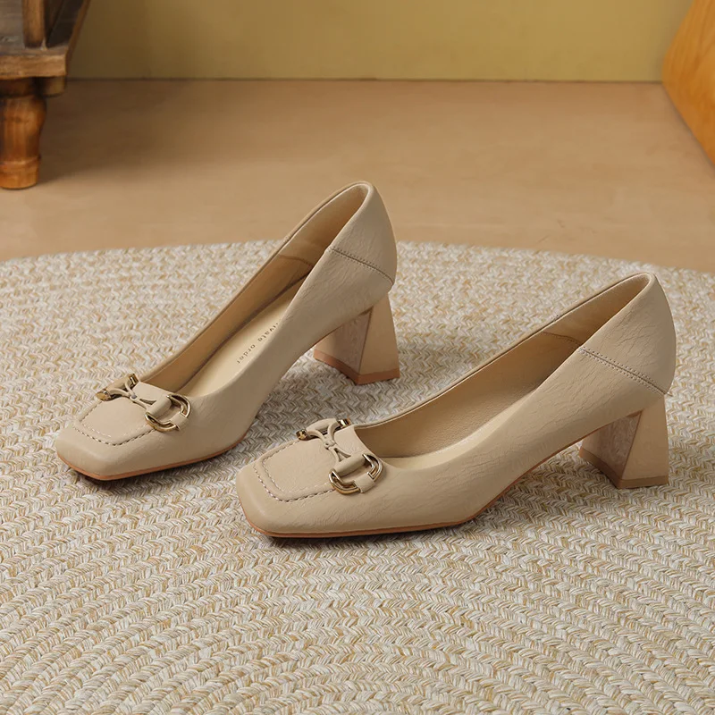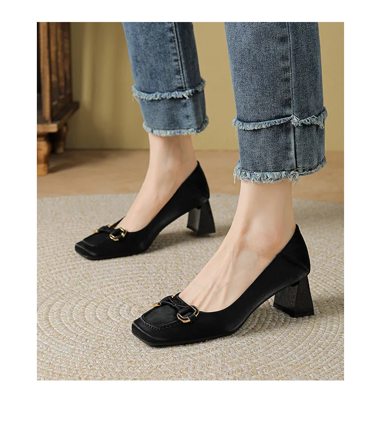 Factory Direct Custom Cross-Border Sheepskin High Heels 5cm Thick Square Toe Shallow Autumn Season 5525-8
