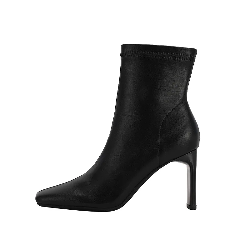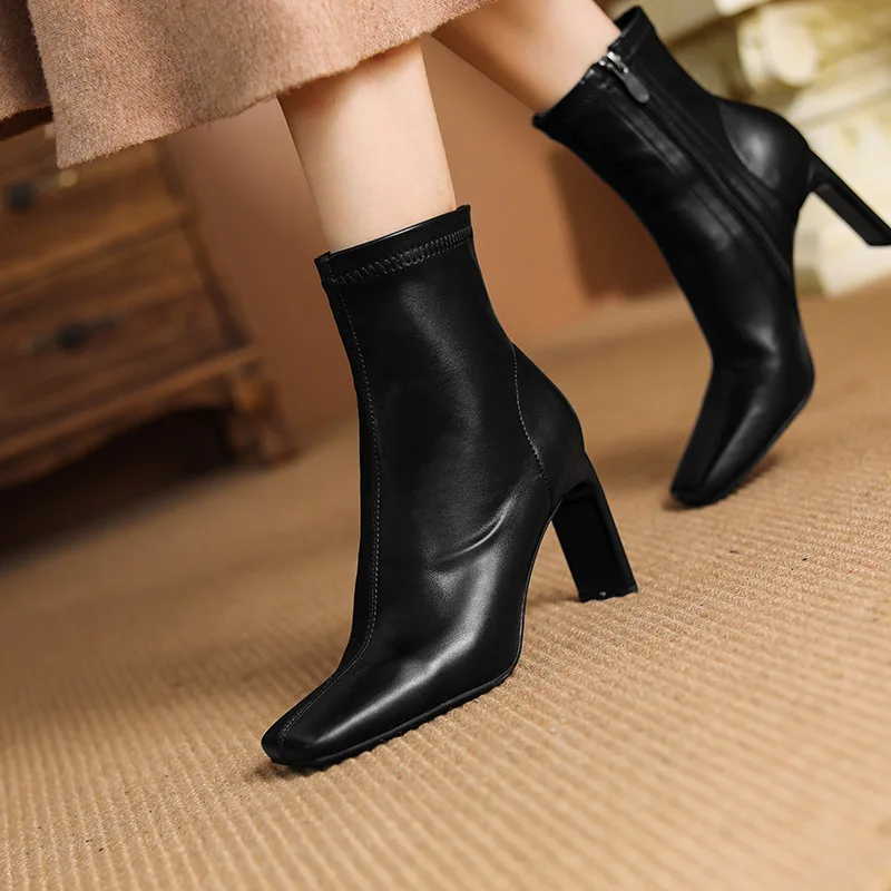 Factory Direct Custom High-Heeled Women's Short Boots Square Head Thick Heel Side Zipper Design Low Barrel Joker Ankle Bootie