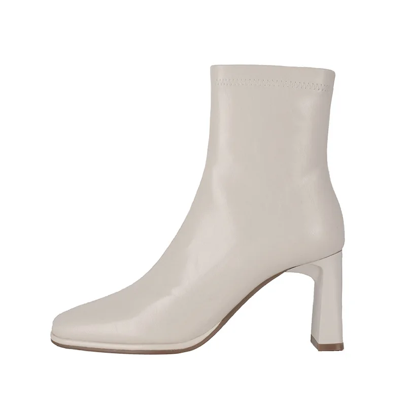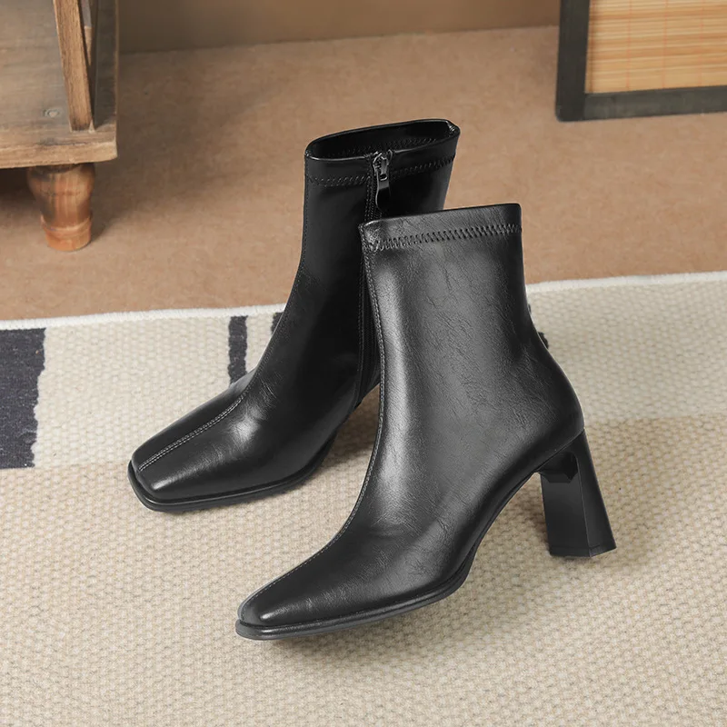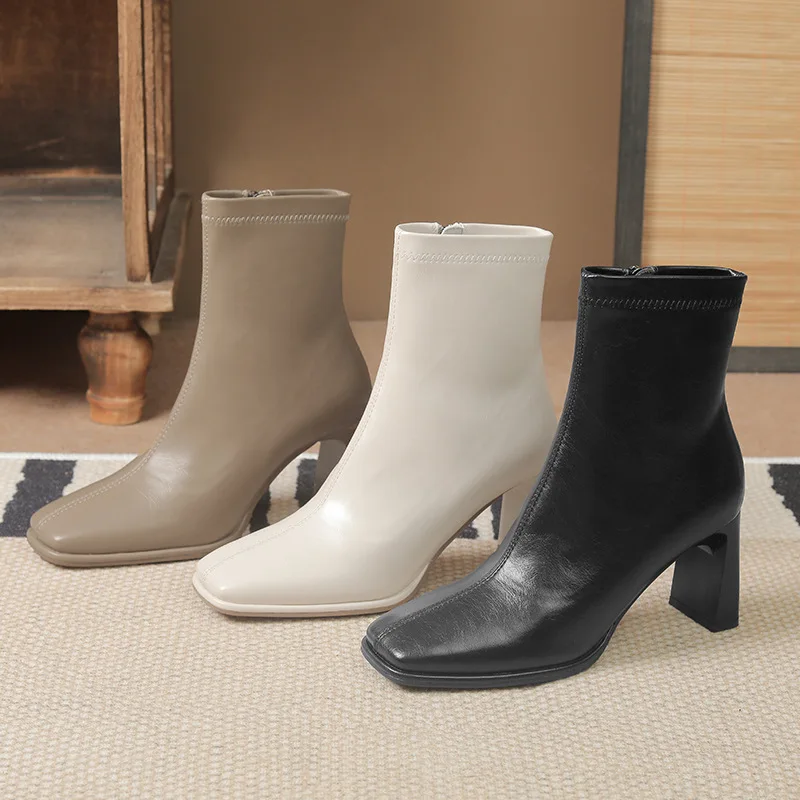 Factory Direct Custom Cross-Border Joker Thick Heel Women's Spring Autumn 816-2 Square Head Thin Side Zipper Ankle Bootie