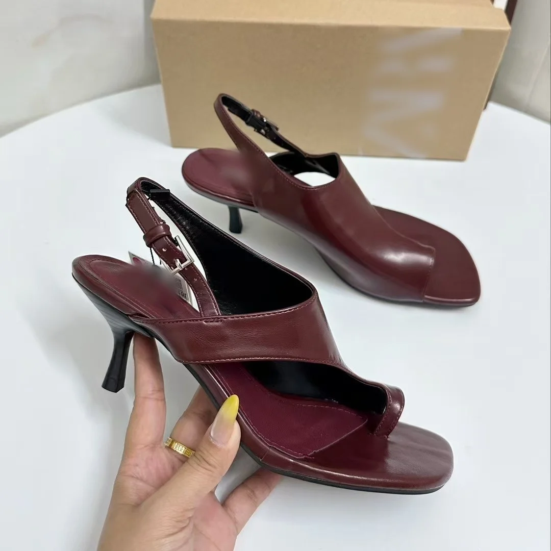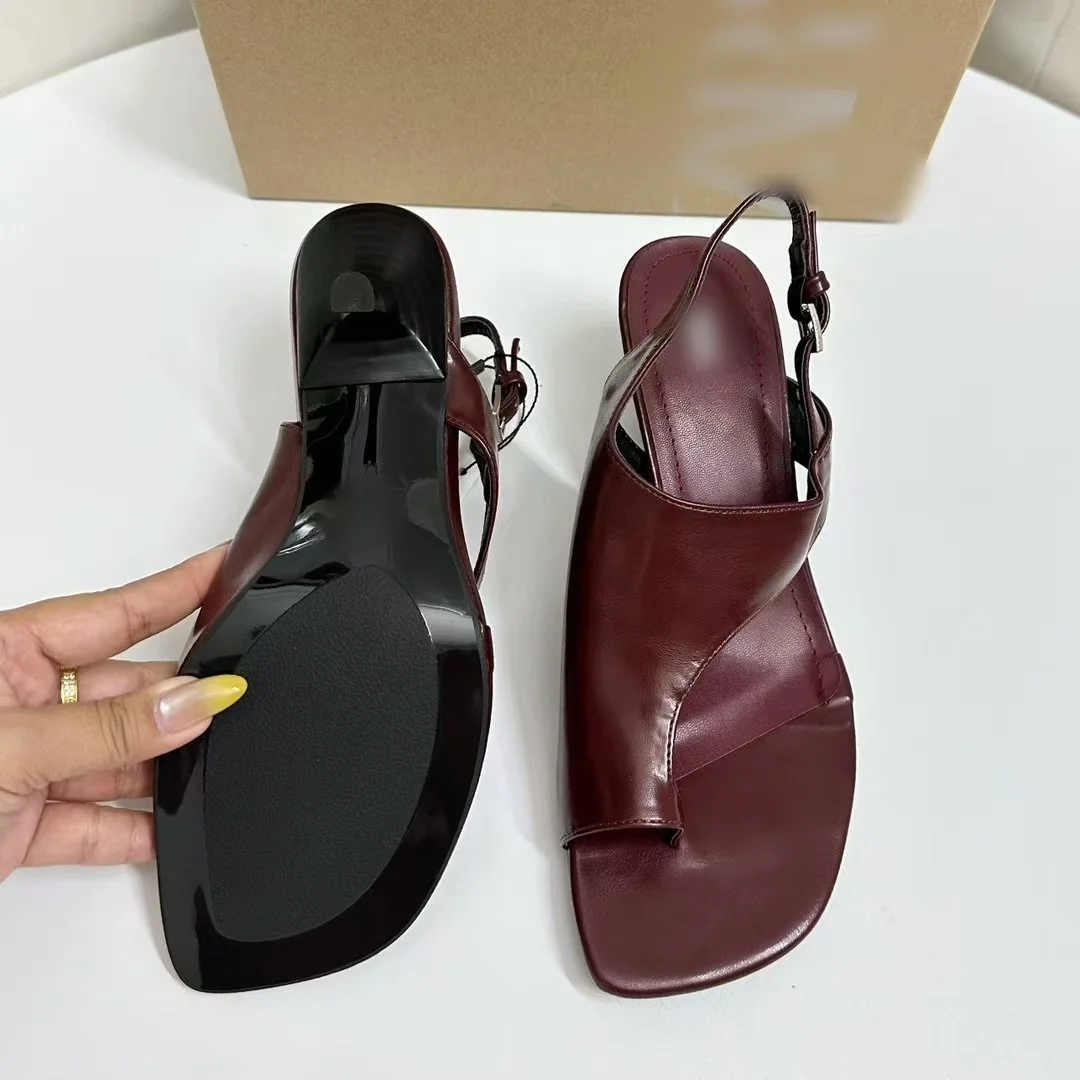 QuiteS Summer's New Trendy High Heels Za Sandals Simple square Toed Flip Toe Sandals Versatile Outer Wear Comfortable for Women
