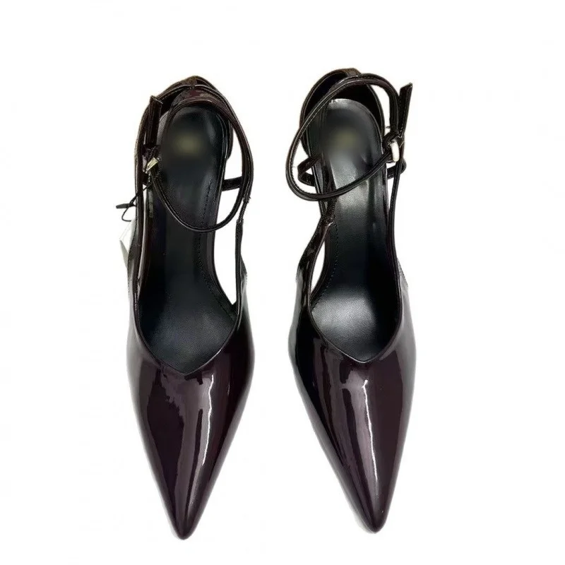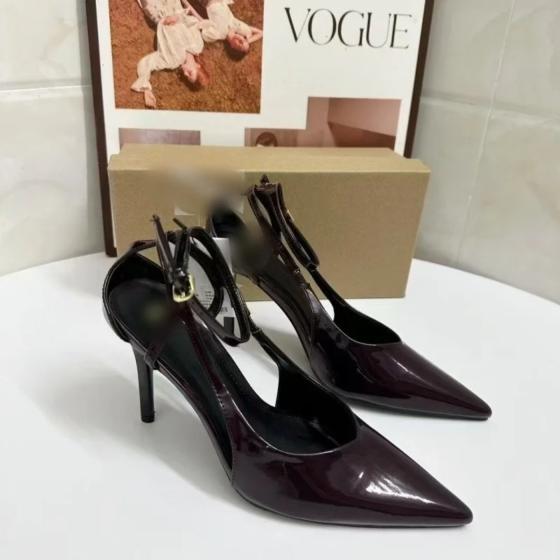 2026 Patent Leather Pointed Toe Wine Red Sexy High Heel Sandals Waterproof Formal Office Lady Pu Shoes Hot Popular Summer Styles