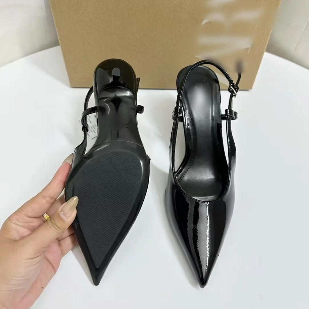 QuiteS Pointed Toe Red Patent Leather Fashionable Versatile High Heel Sandal for Women Fashion Classy Office Buckle Strap Sandal