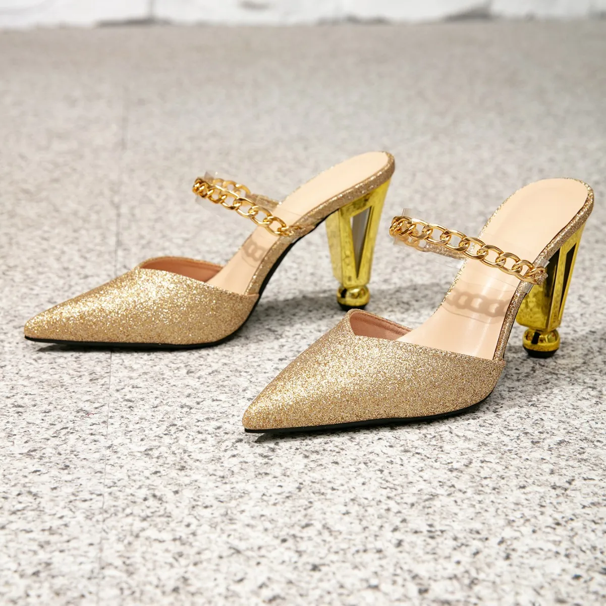 QuiteS 2026 Women's Luxury Evening Party Sandals New Summer Gold High Heel Pumps Special-Shape Thin Heel Height Increasing