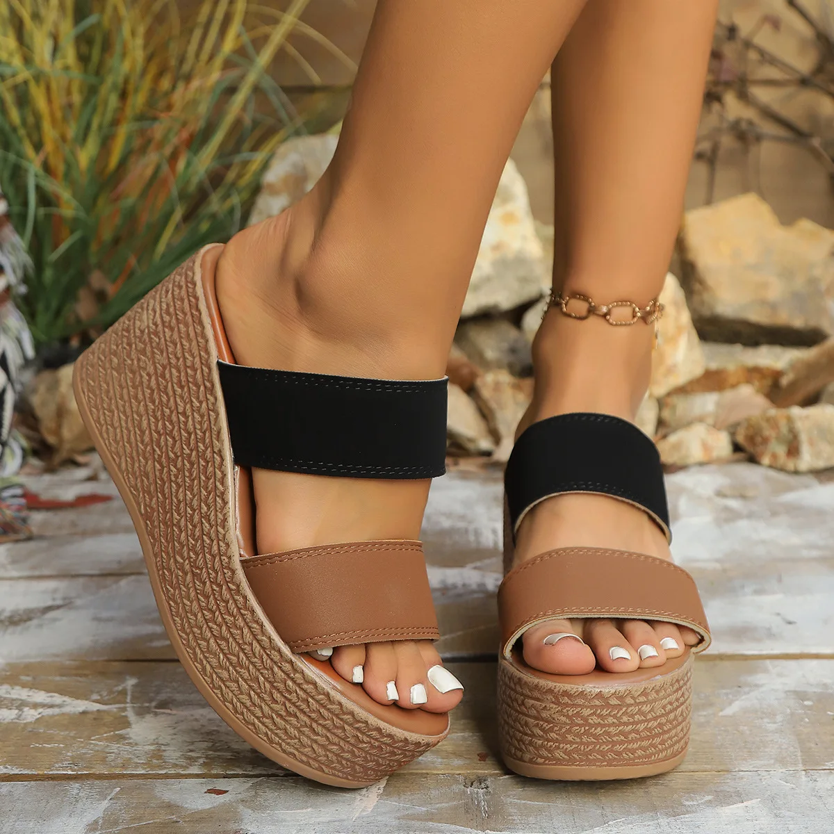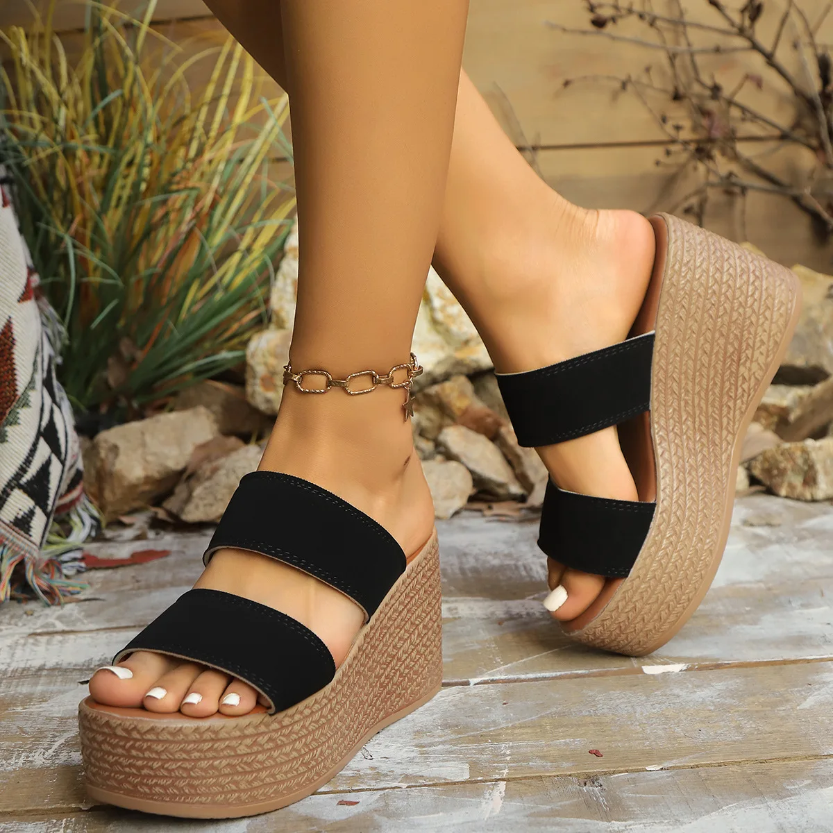 QuiteS 2026 New Style Summer Plus Size Wedge Sandals Thick Platform Sole Slippers Casual Elegant Shoes for Women