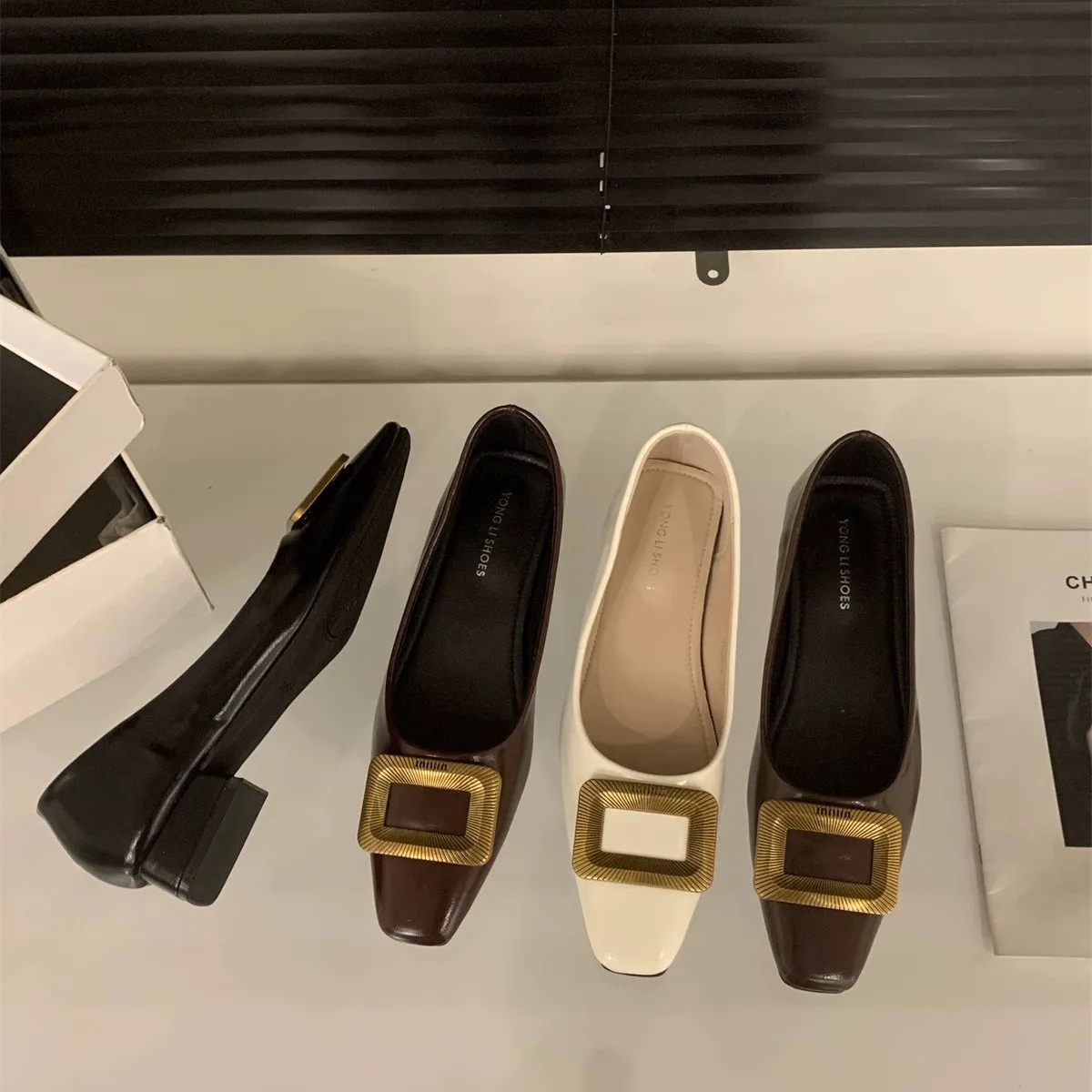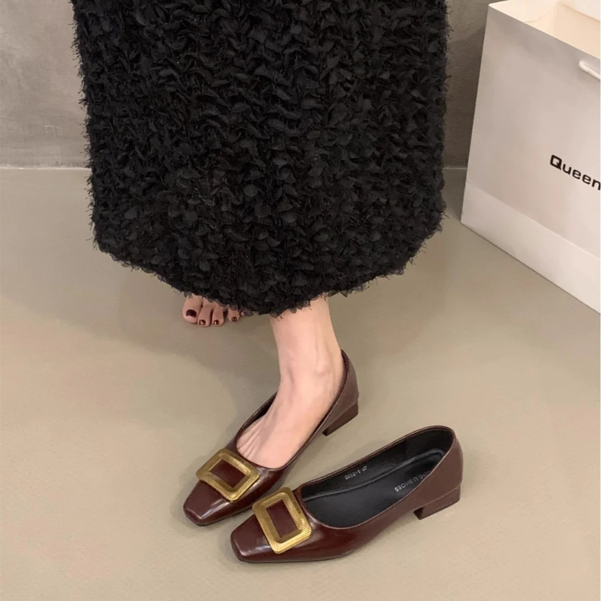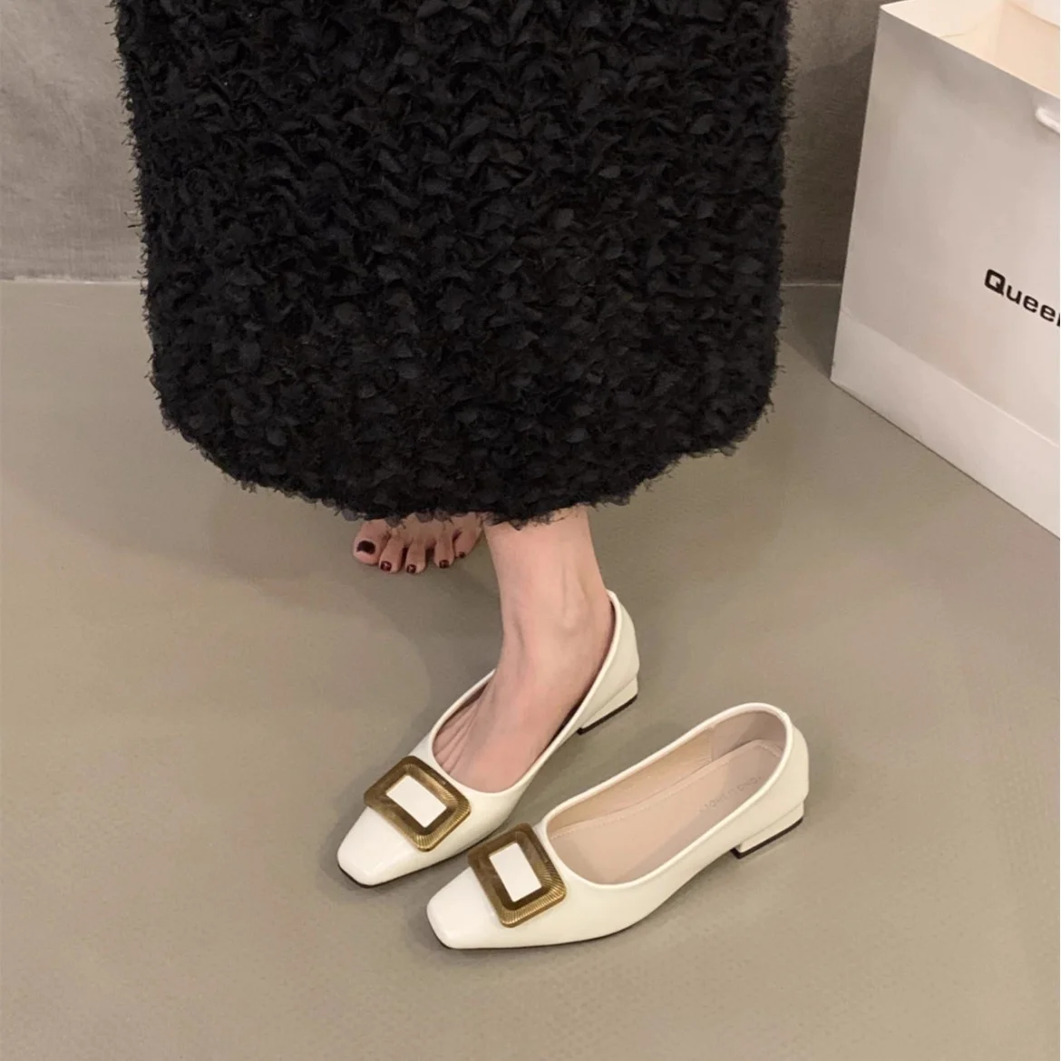 QuiteS 2026 Women's Summer Casual Office Shop Shoes New Style Shallow Mouth Shallow Mouth Shallow Metal Buckle Shallow Slip-On