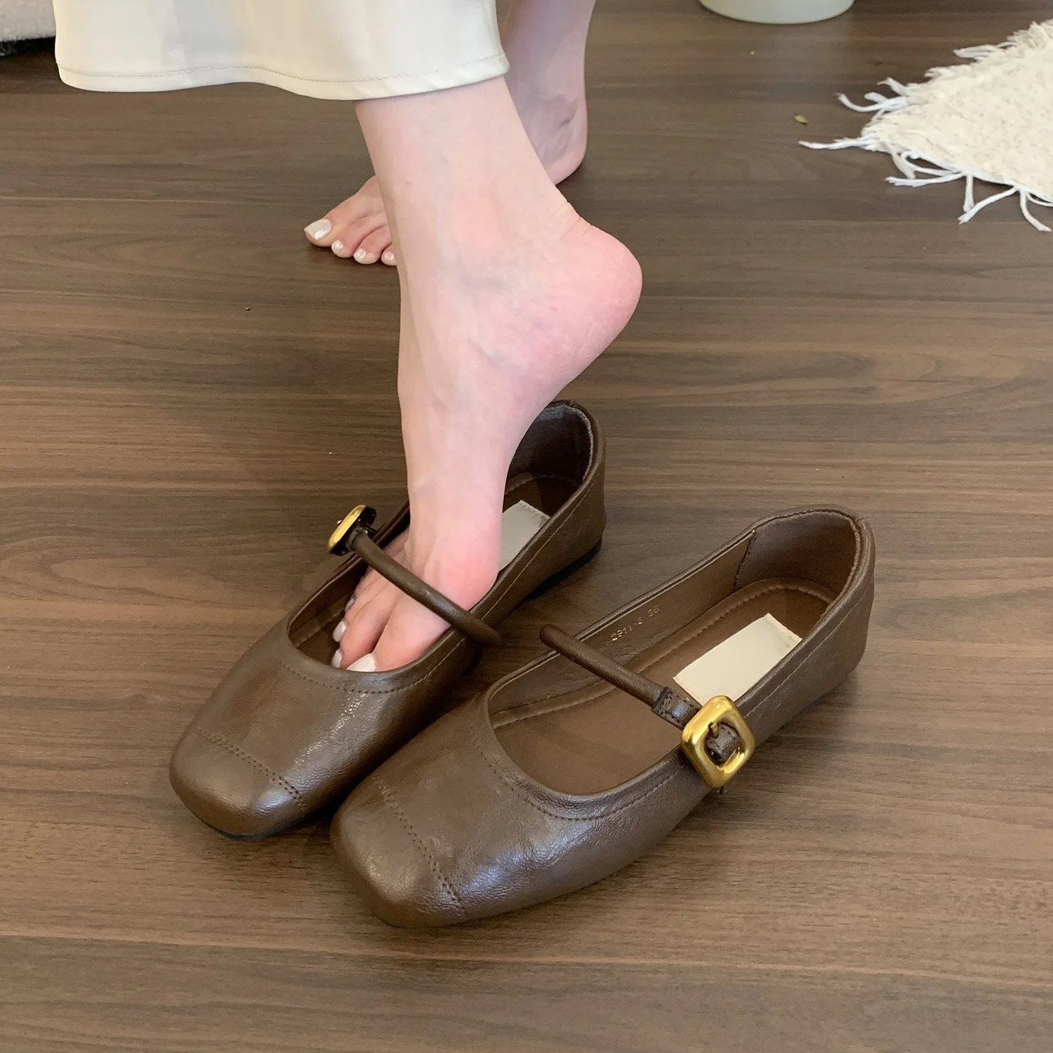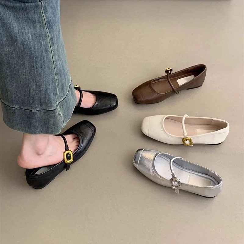 Women's New French Retro Leather Loafers Toe Shallow Mouth Silver Single Shoes Height Increasing Feature Soft Flat Mary Jane