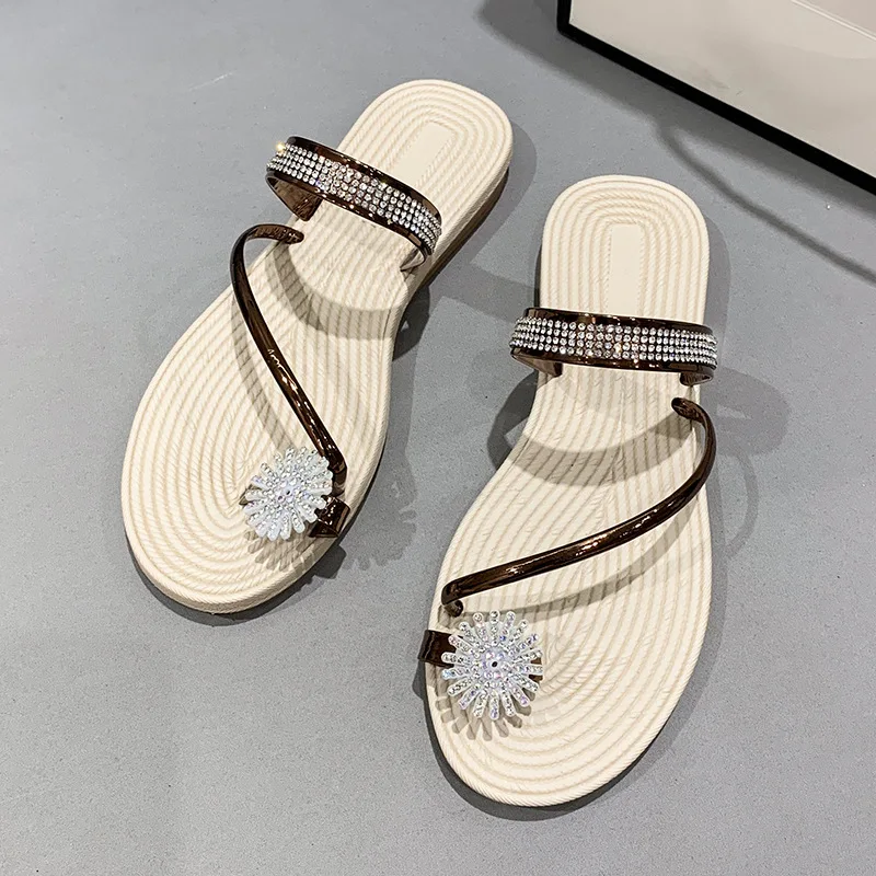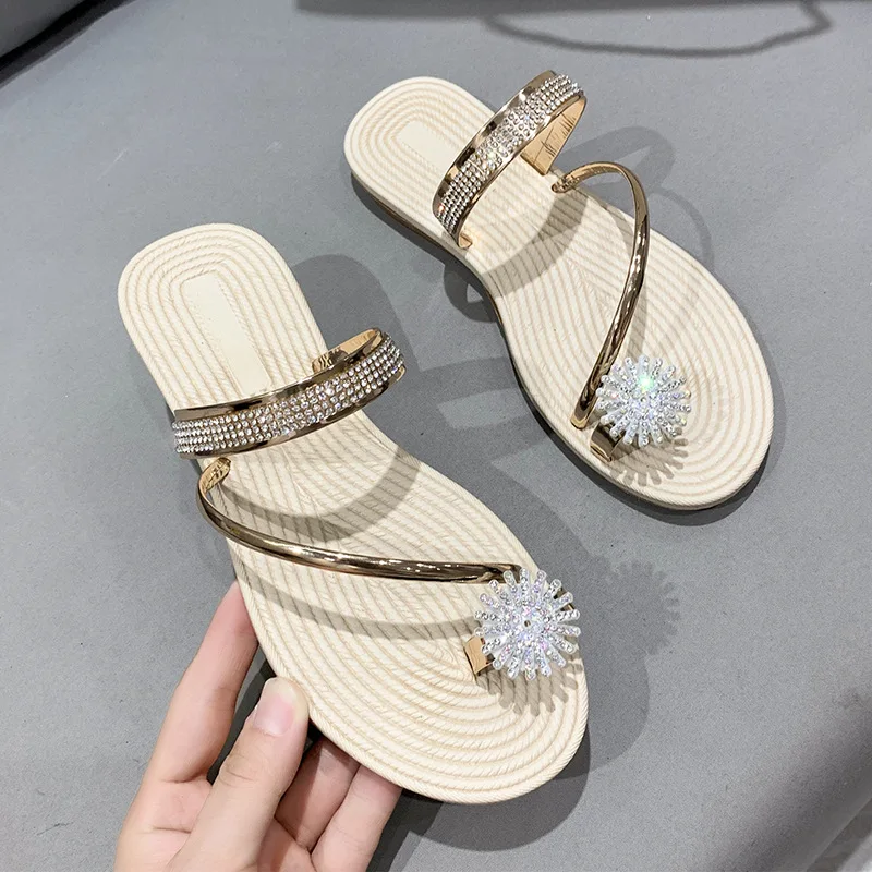 QuiteS 2026 Women's Elegant Office Casual Slip-On Sandals New Hot Plus Size Roman Flat Fairy Design Rhinestone Summer Platform