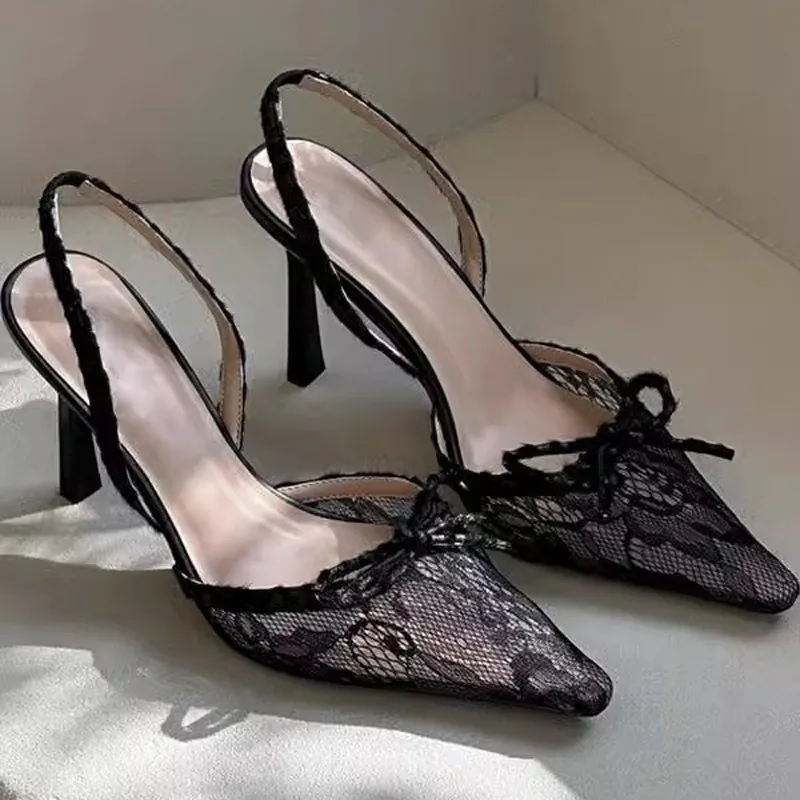 Women's Fashionable Summer Lace Plush Breathable Design Stiletto Heel Pointed Toe Trendy Styles Sold Directly Source Factory