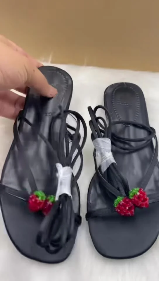 2026 QuiteS New Winter Collection Black Strappy Rhinestone Cherry Pendant Casual Shoes with Office & Sexy Appeal for Women
