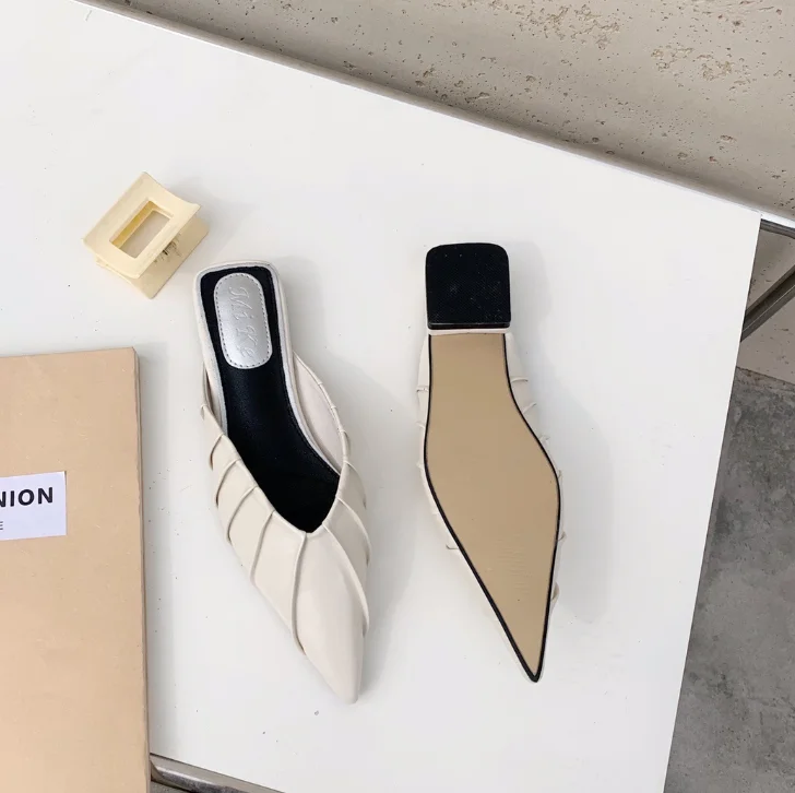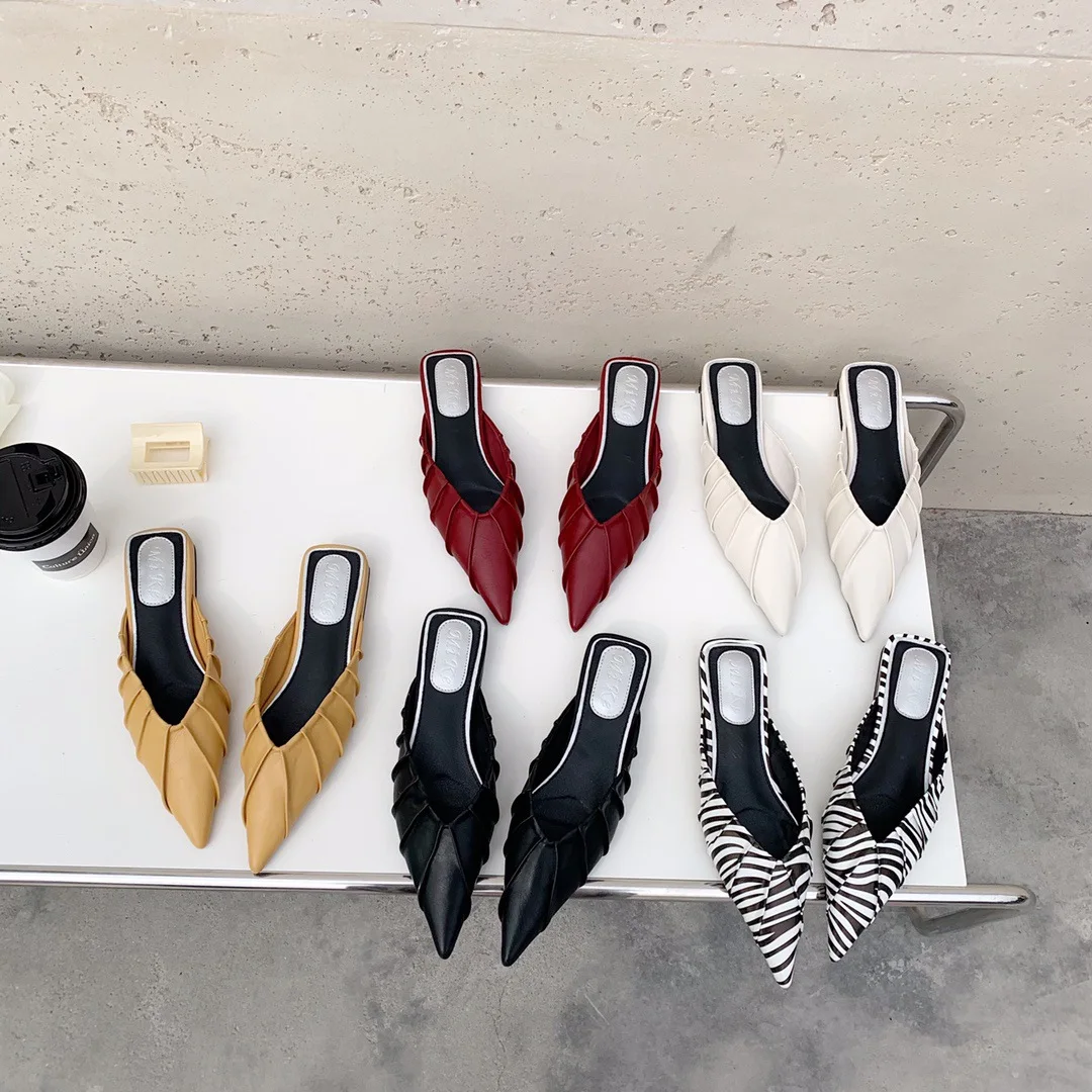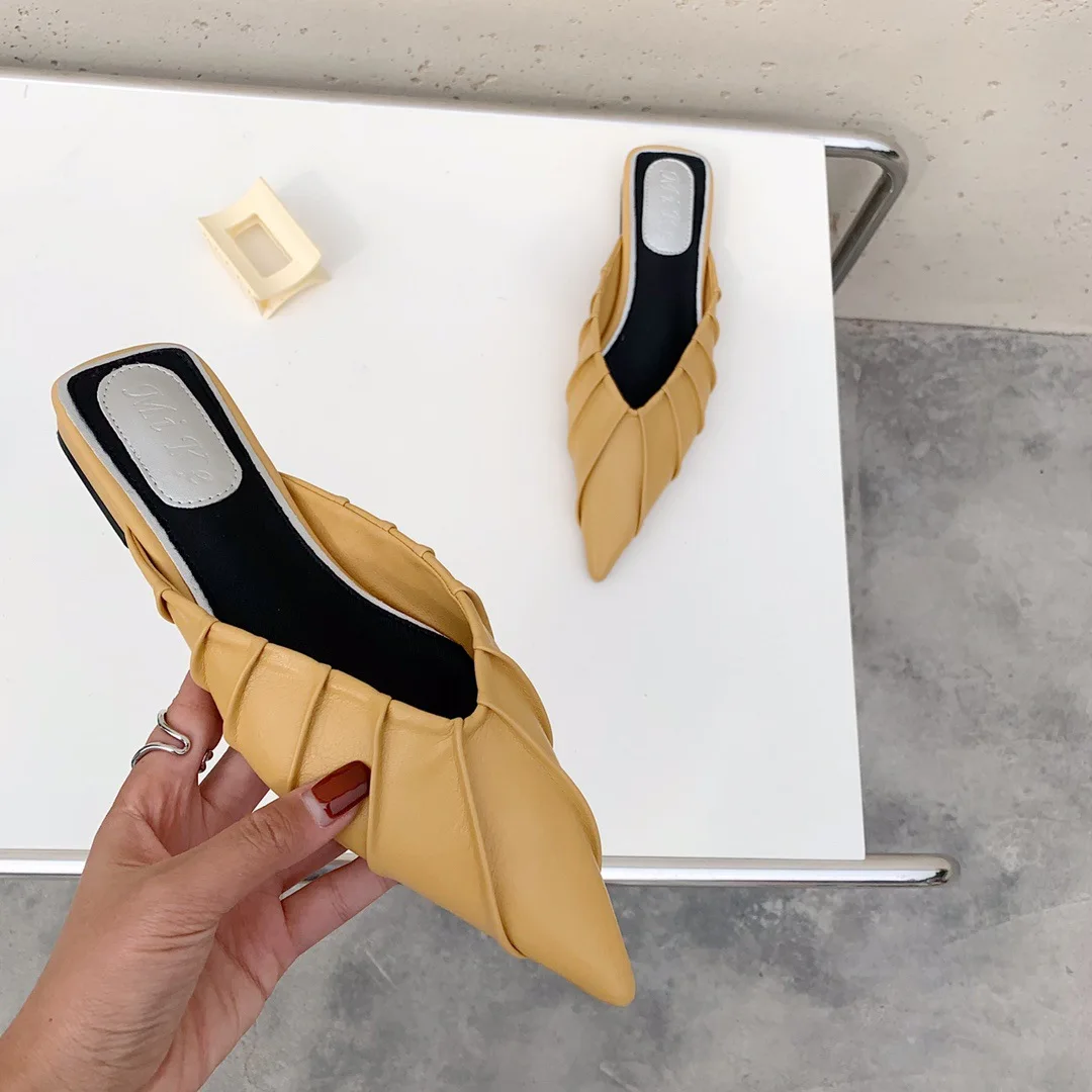 QuiteS 2026 New Hot Pointed-Toe Closed-Toe Half-Slippers Pleated Lazy Mules Slip-On Closure Type Sandals Casual Shoes for Women