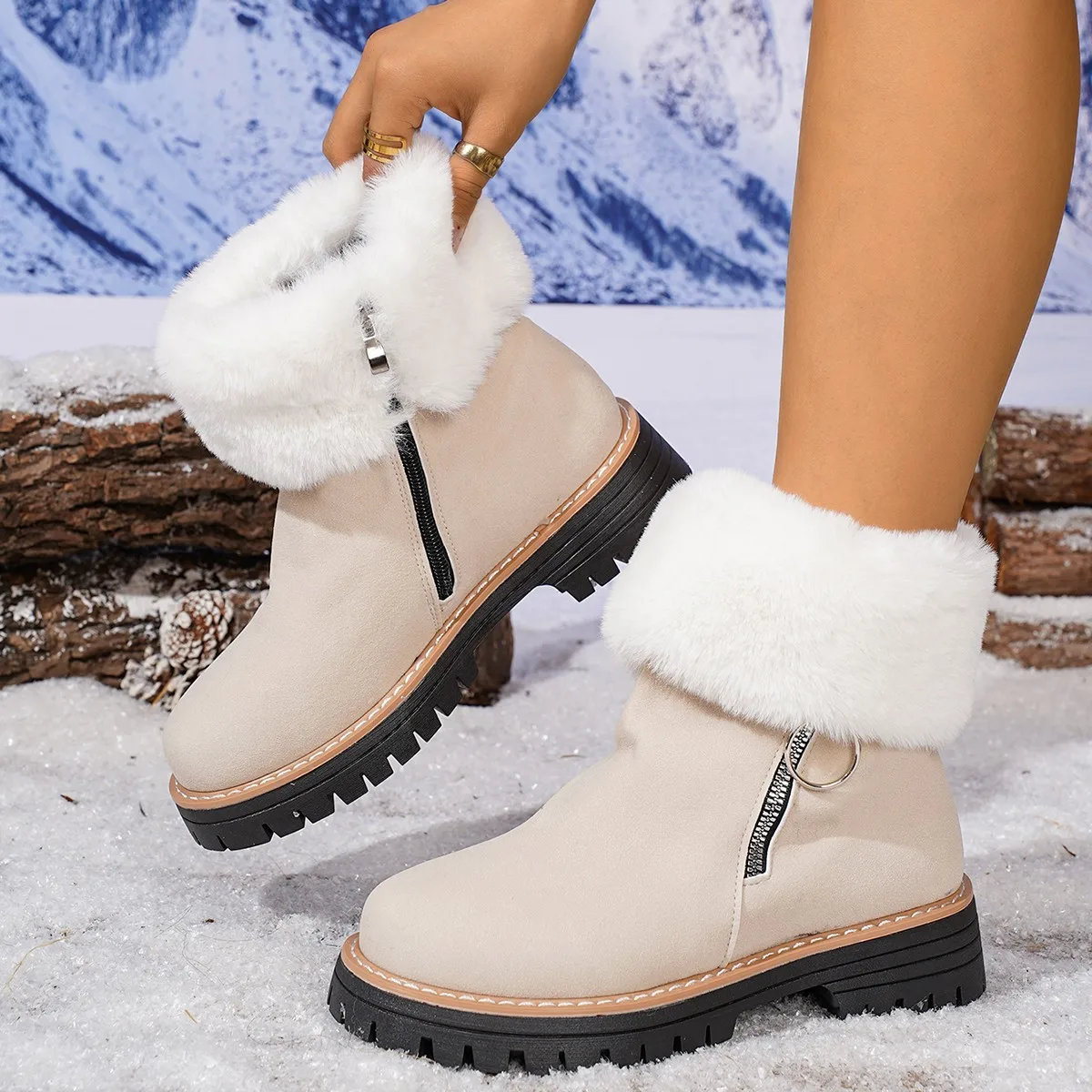 QuiteS 2026 Winter Plus Size New Warm Fur-Lined Snow Boots Side Zipper Style Sexy Casual Shoes for Women Mid-Heels Boots