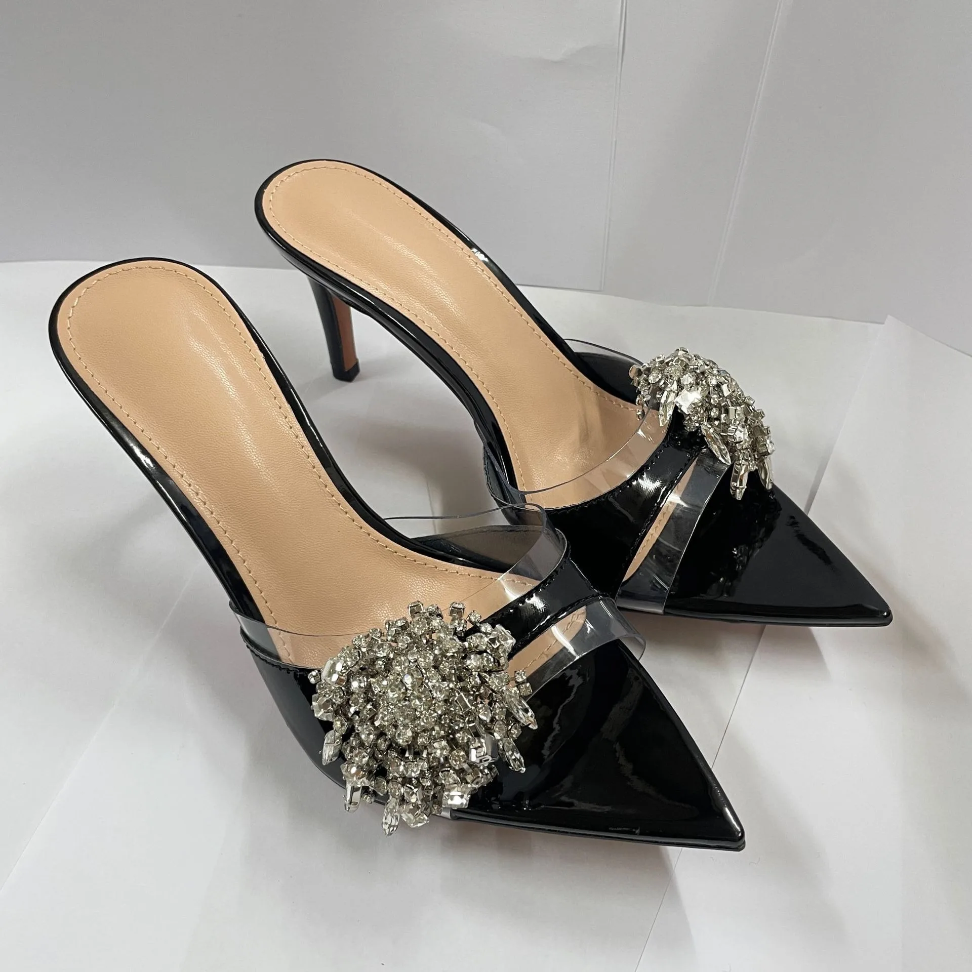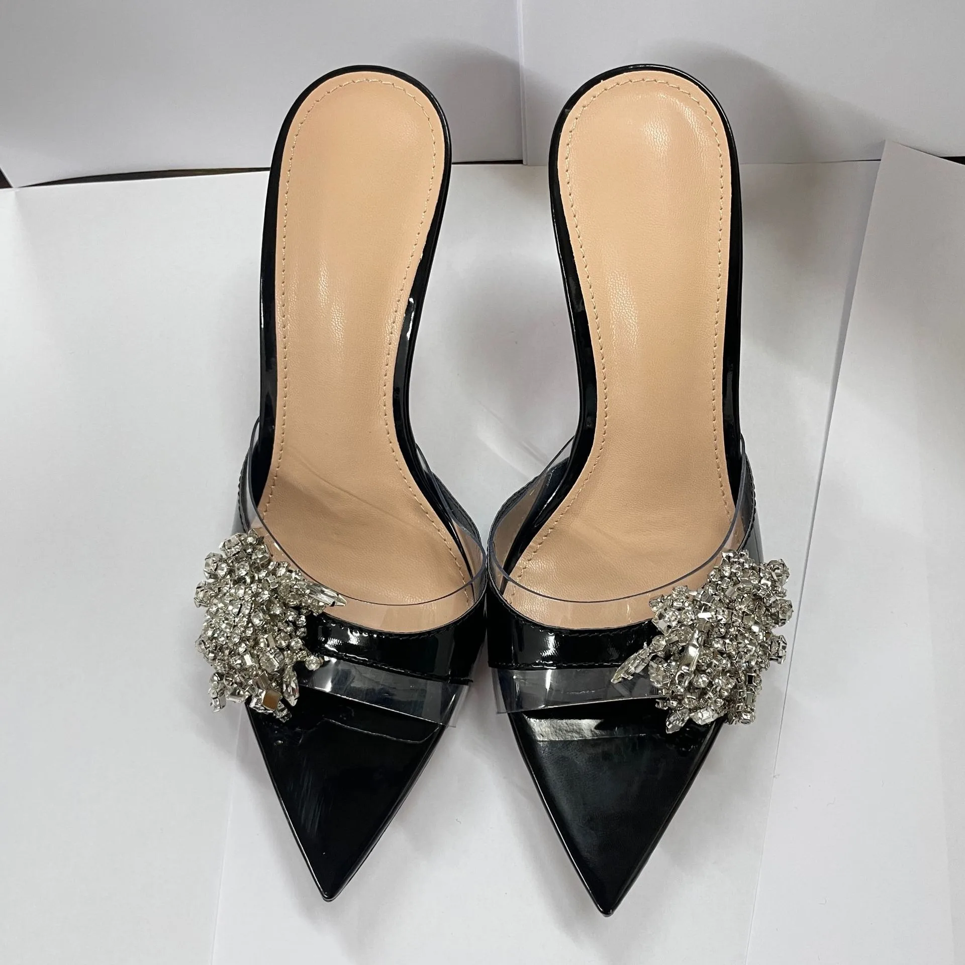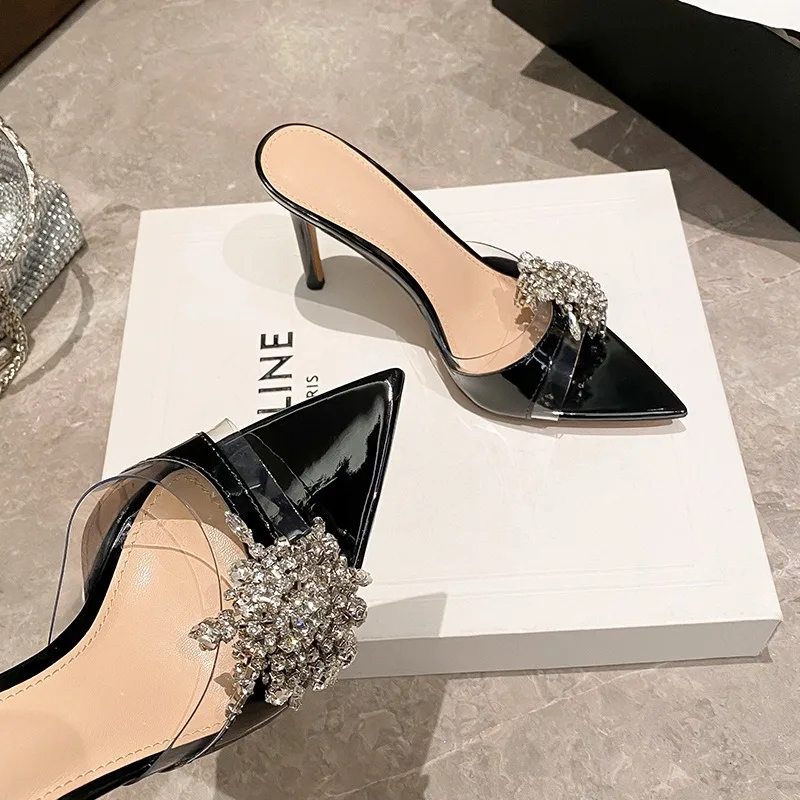 QuiteS 2026 Summer Women's Luxury Open Toe Rhinestones Party Shoes High Heels Point Toe Slim Heels Slip-On Fashionable Luxury