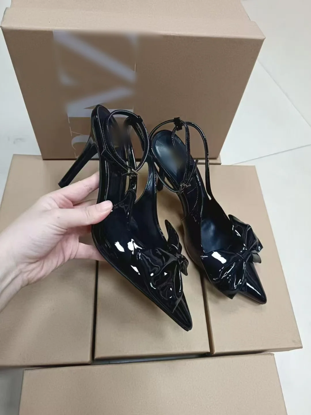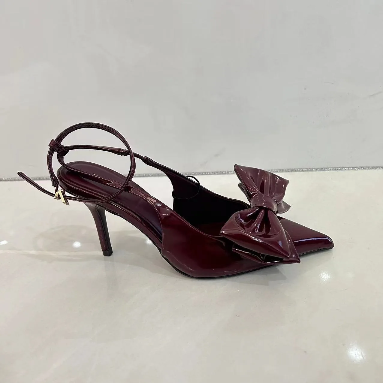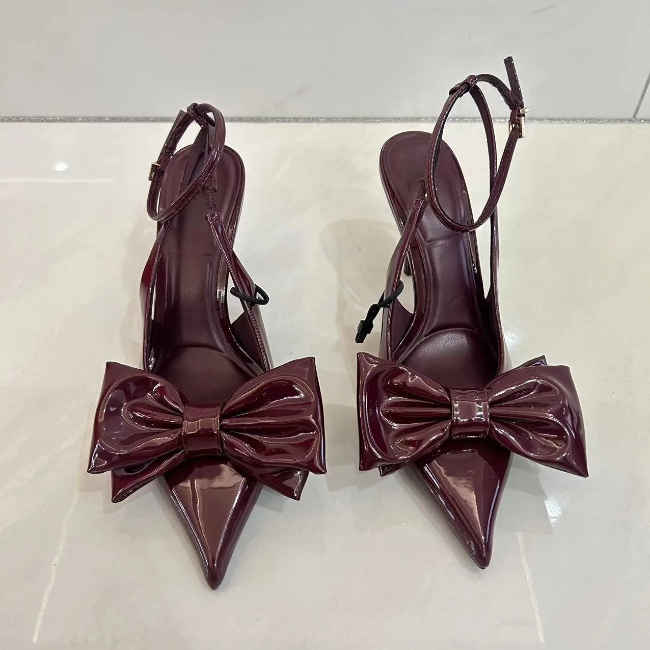 QuiteS New Red Bow Decorated High Heels French Pointed Hollow Back Stiletto Sandals Women's Designer Heeled Shoes