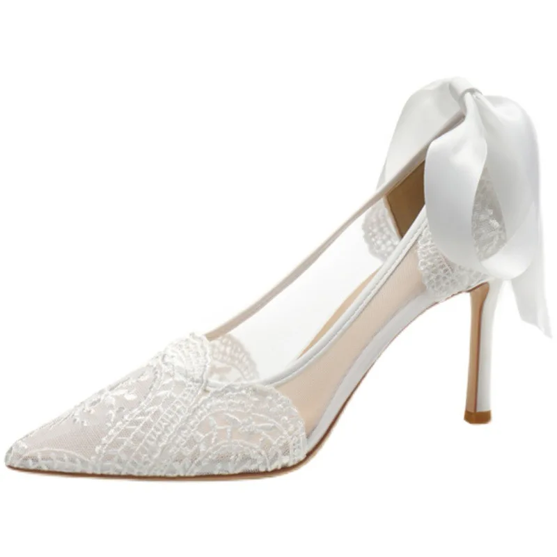 QuiteS New 2026 for Wedding Bridal Shoes Lace Bridesmaid White Pointed High Heels Sandals Thin Heel Beautiful Shoes for Women