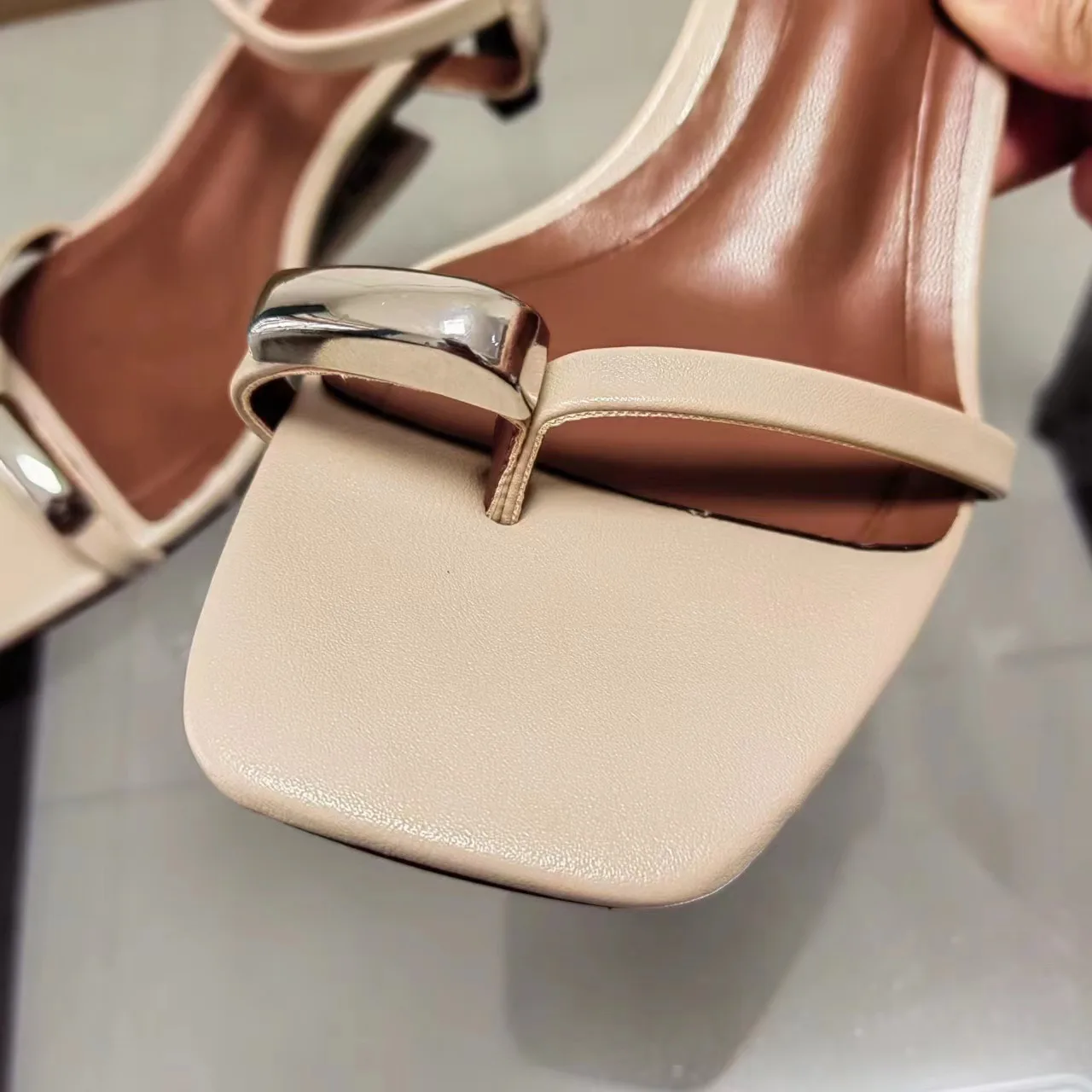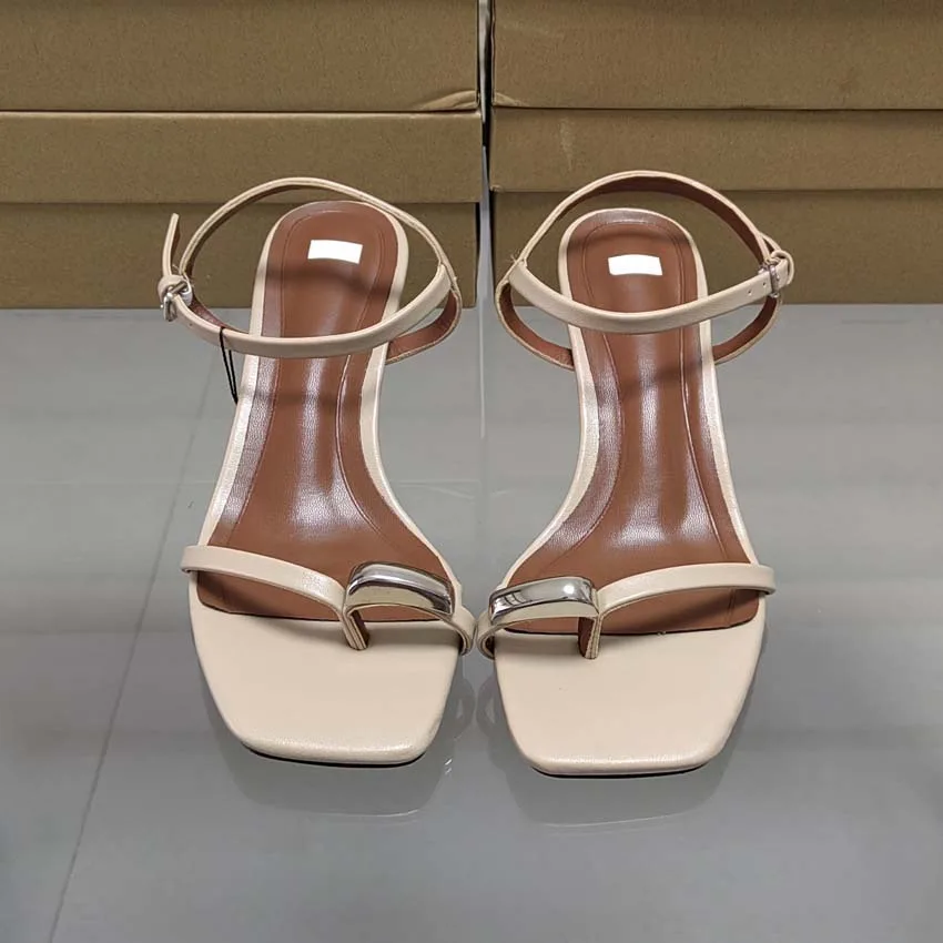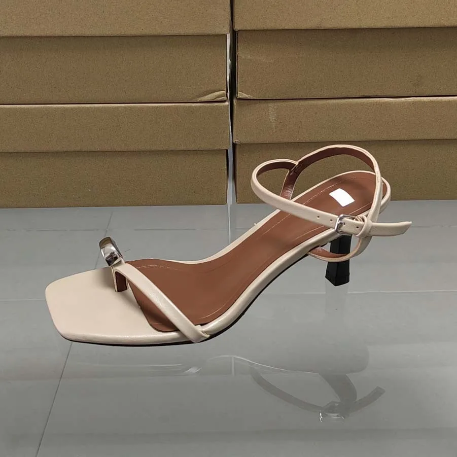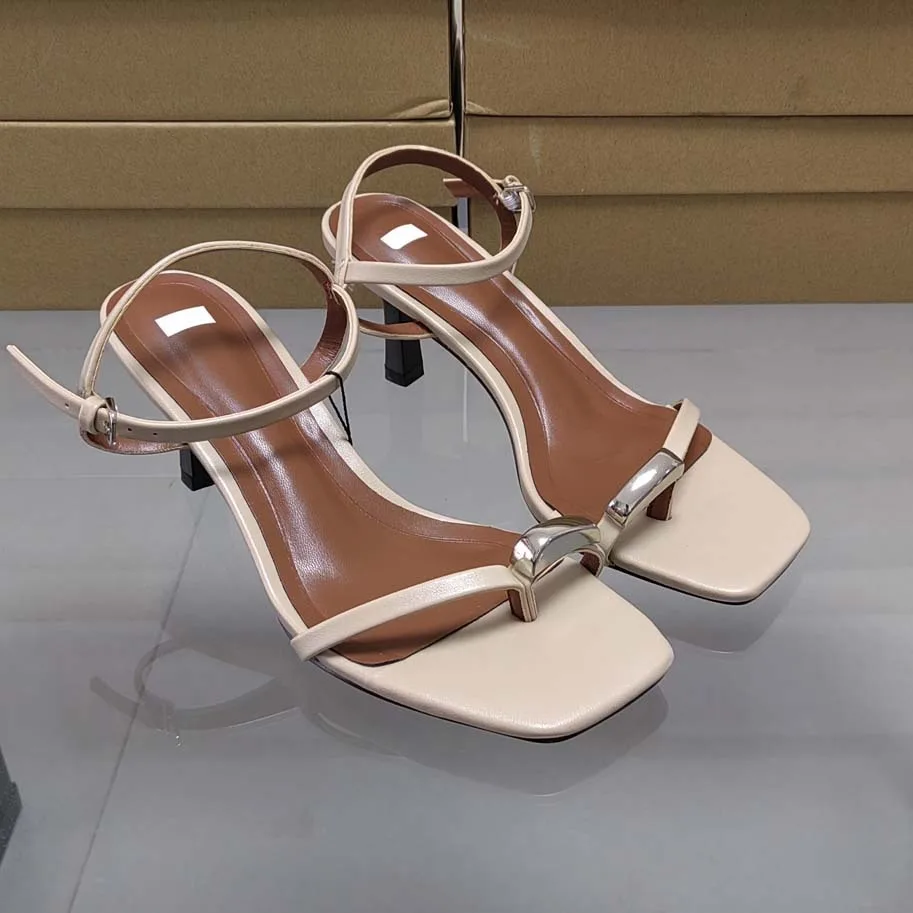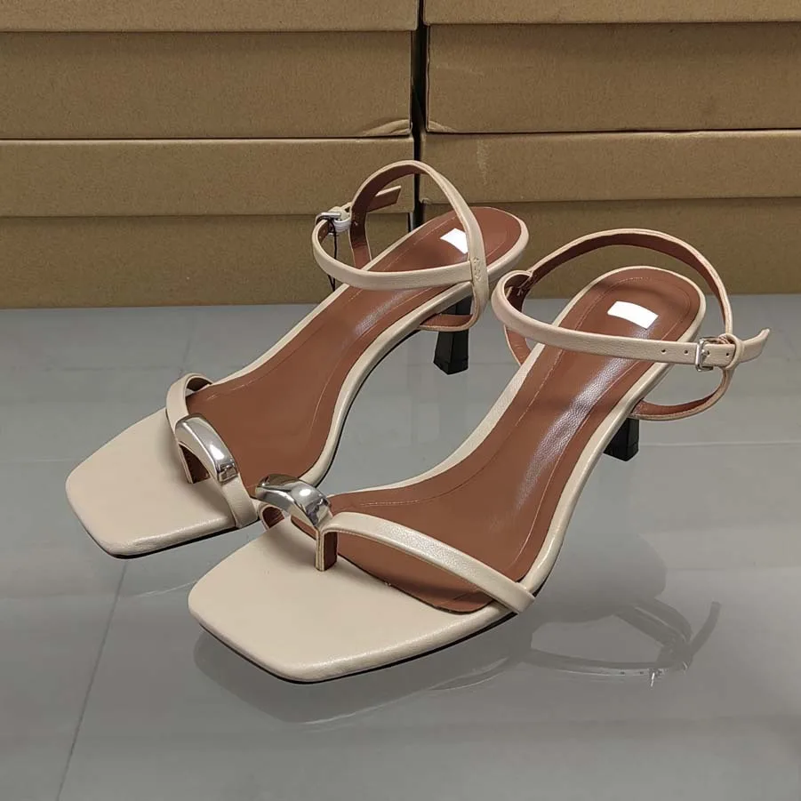 QuiteS 2026 Summer Women's Slip-On Dress Shoes New Square Head Metal Decorative High Heel Sandals with Open Toe and Buckle Line