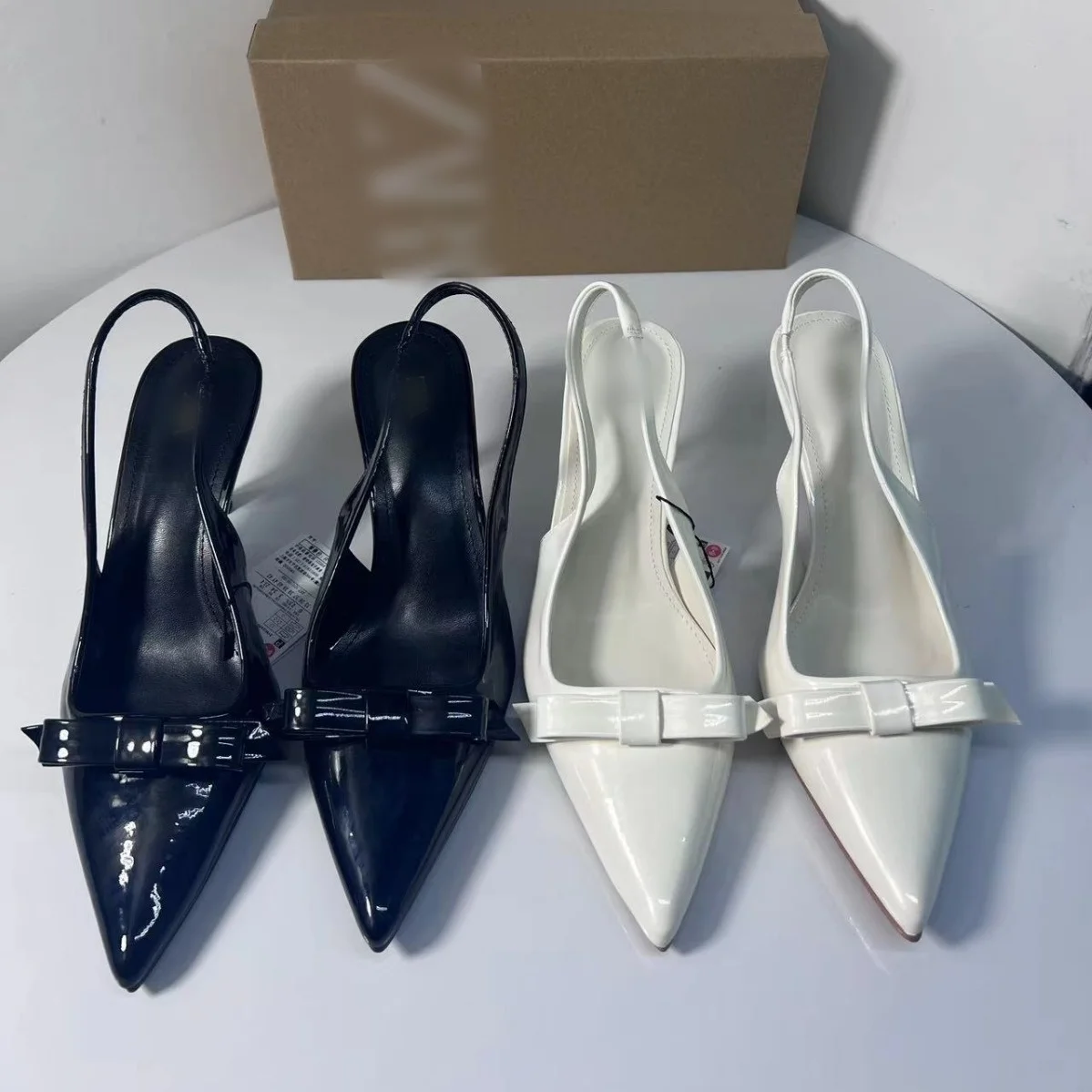 QuiteS 2026 Women's Patent Leather High-Heeled Sandals Pointed Toe Slip-On Closure for Commuting and Business Summer Style
