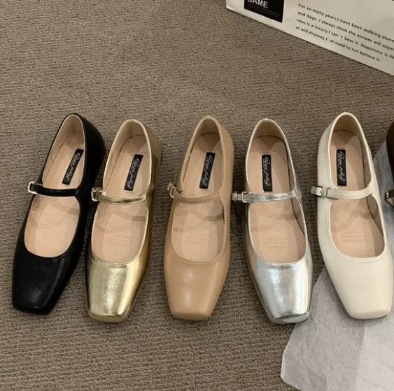 QuiteS 2026 Ladies' Casual Office Flat Shoes New Style Square Toe Shallow Mouth Slip-On Sexy Single Shoes for Autumn Season