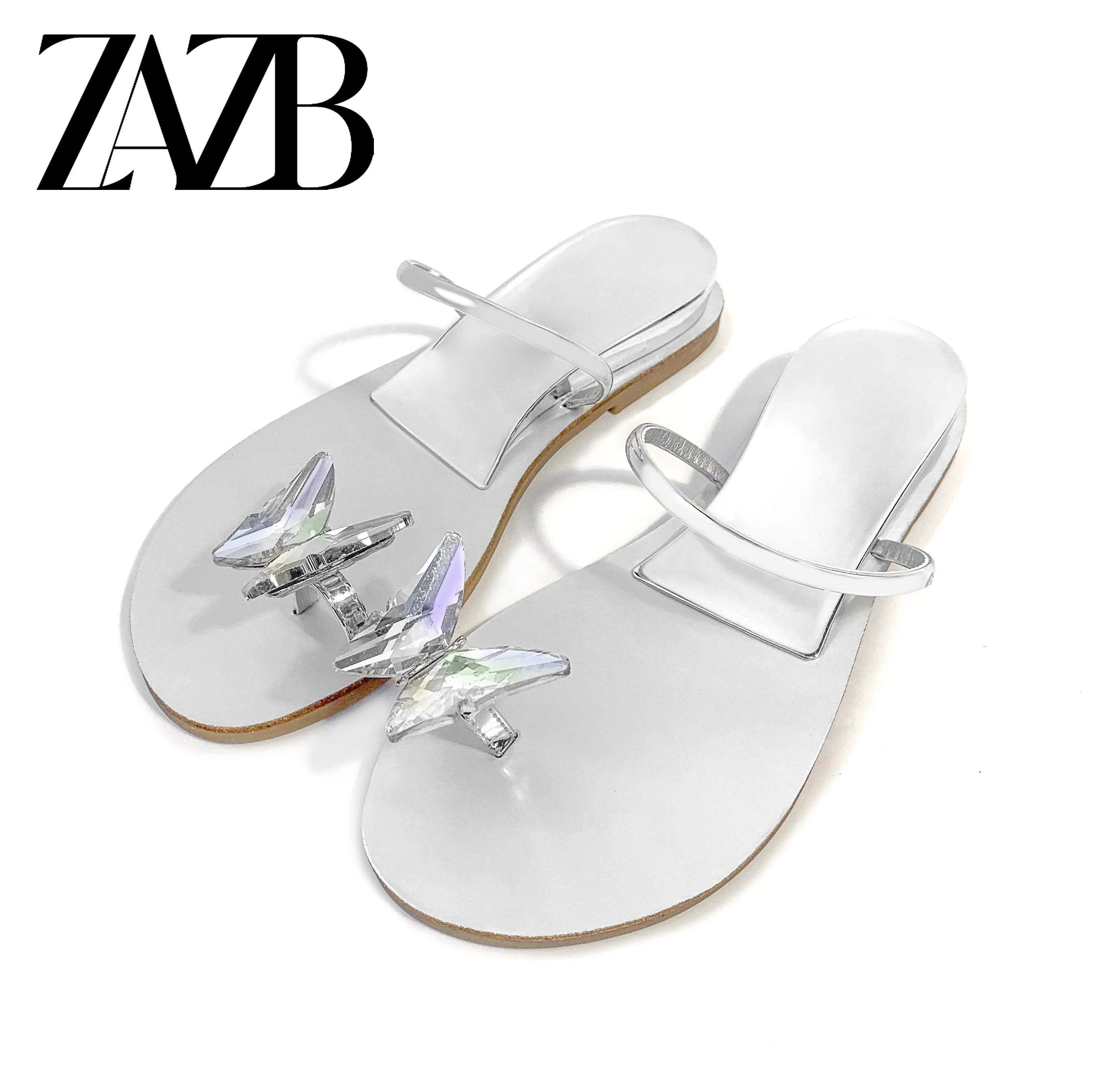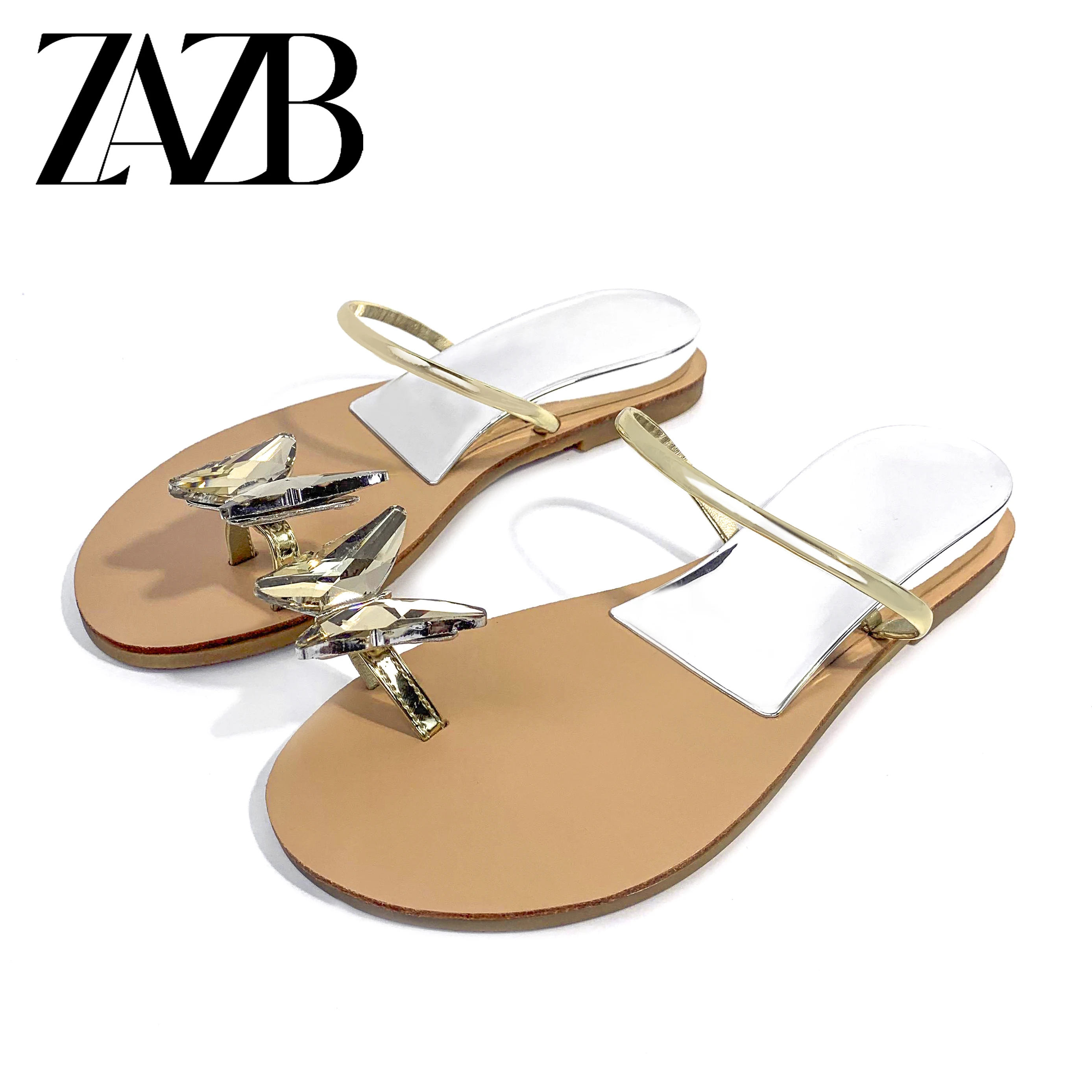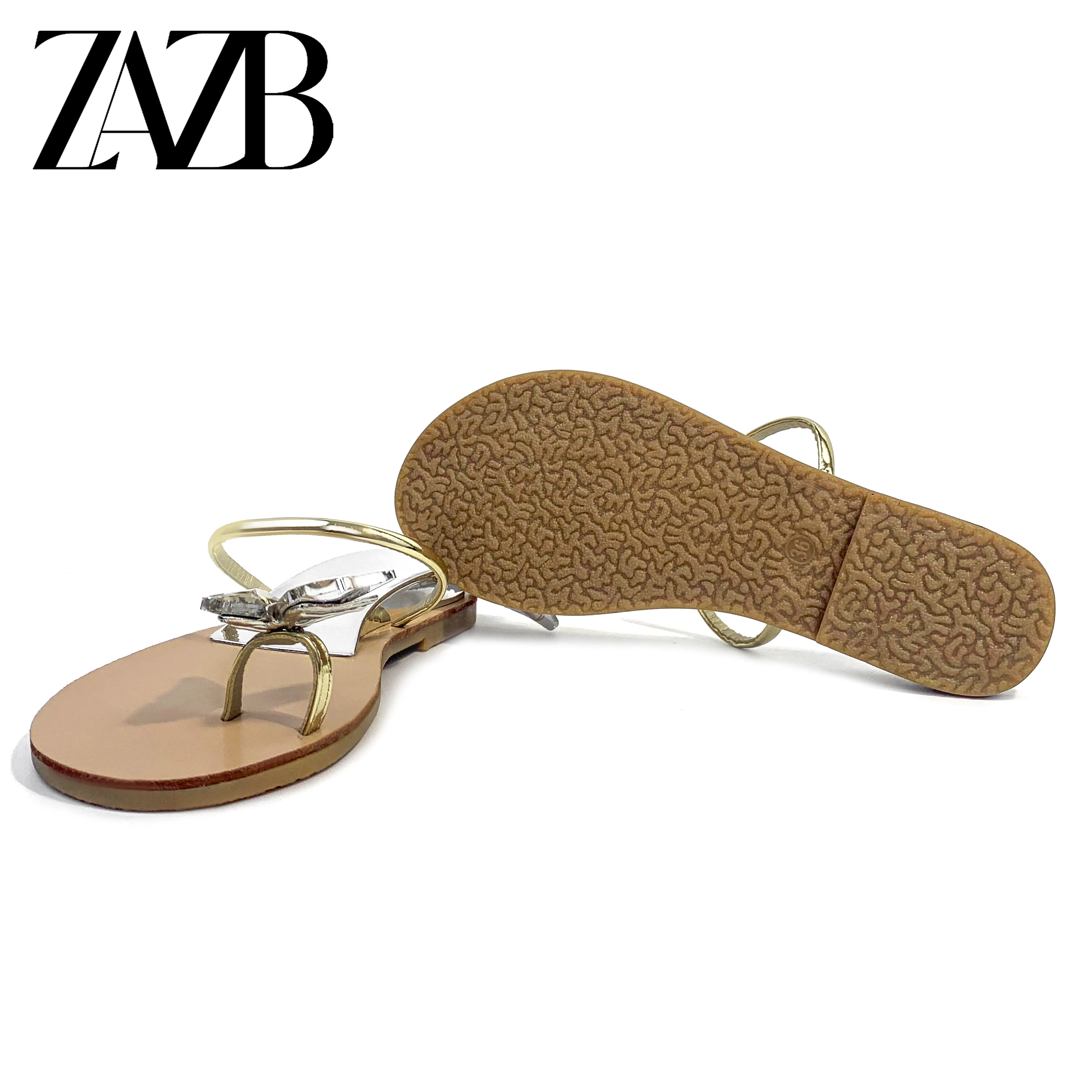 Summer New Style Fine Drawstring Bright Rhinestone Flat Sandals Women's Head Roman Flat slippers