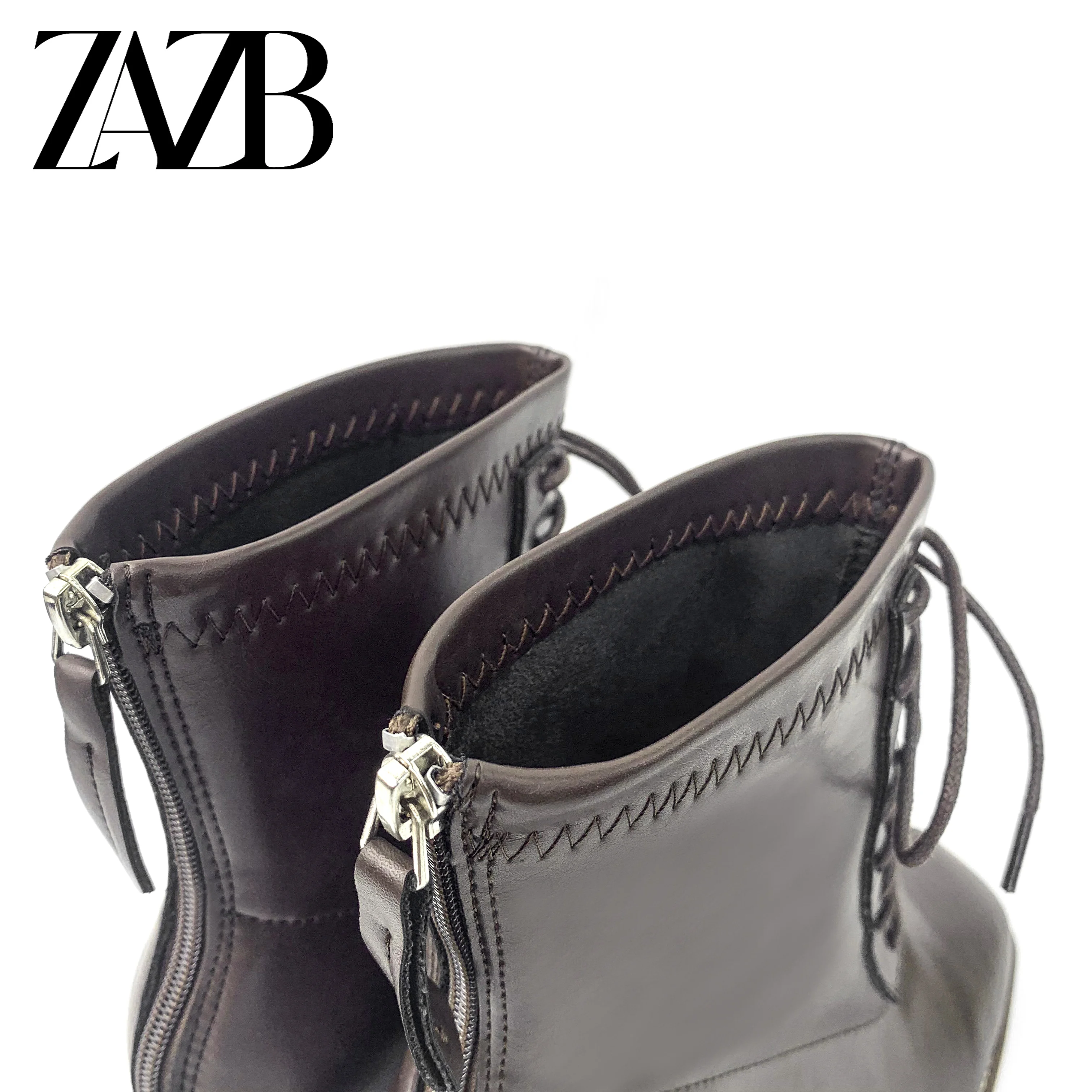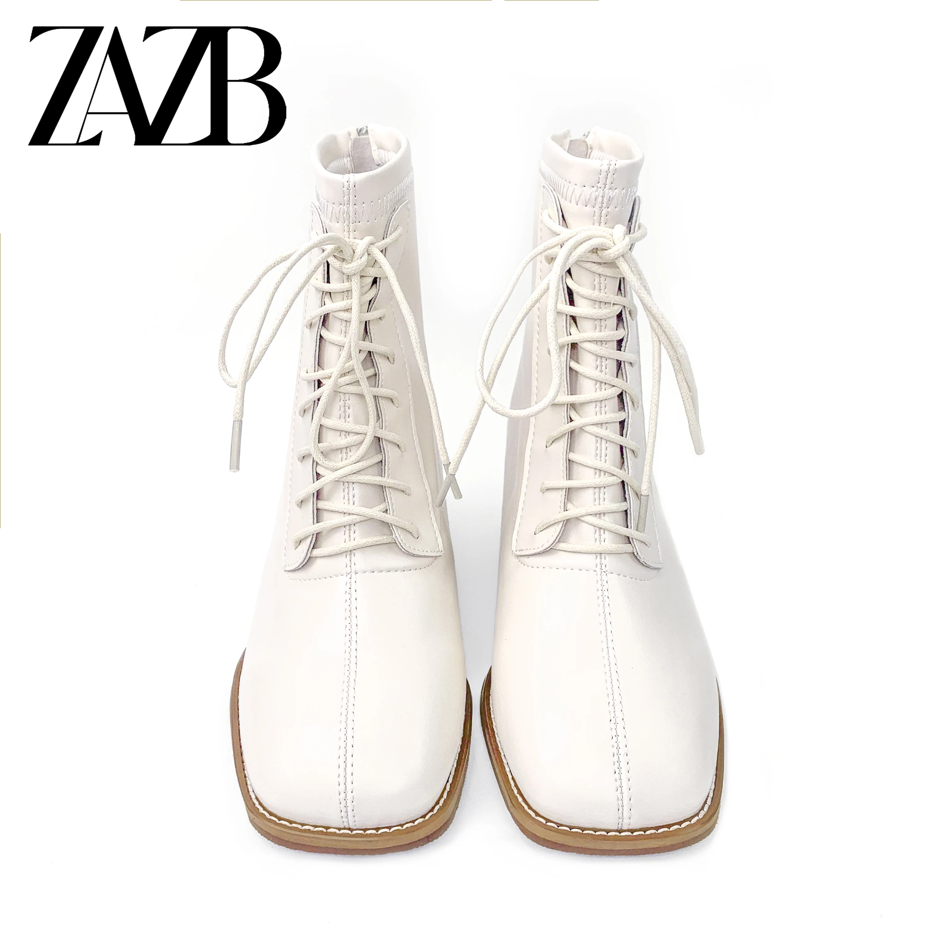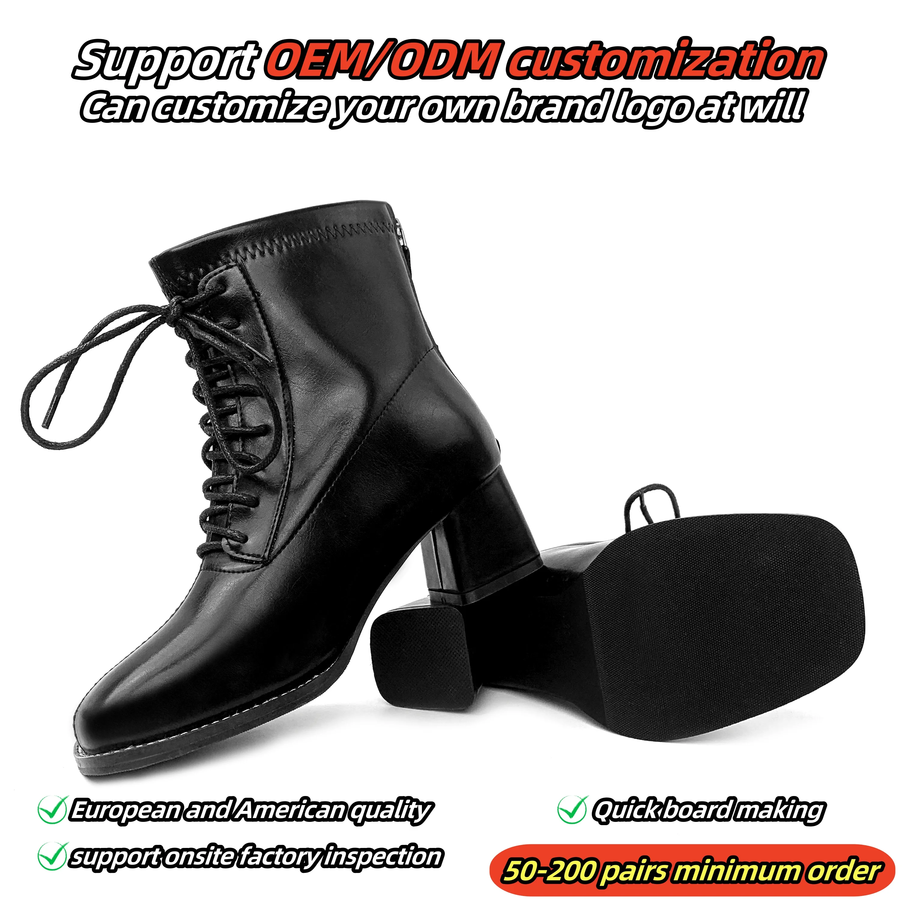 New Arrival Winter Middle Cylinder Pointed Toe Ladies Lace up Crude High Heels Booties for Women Boots Formal Leather Shoes