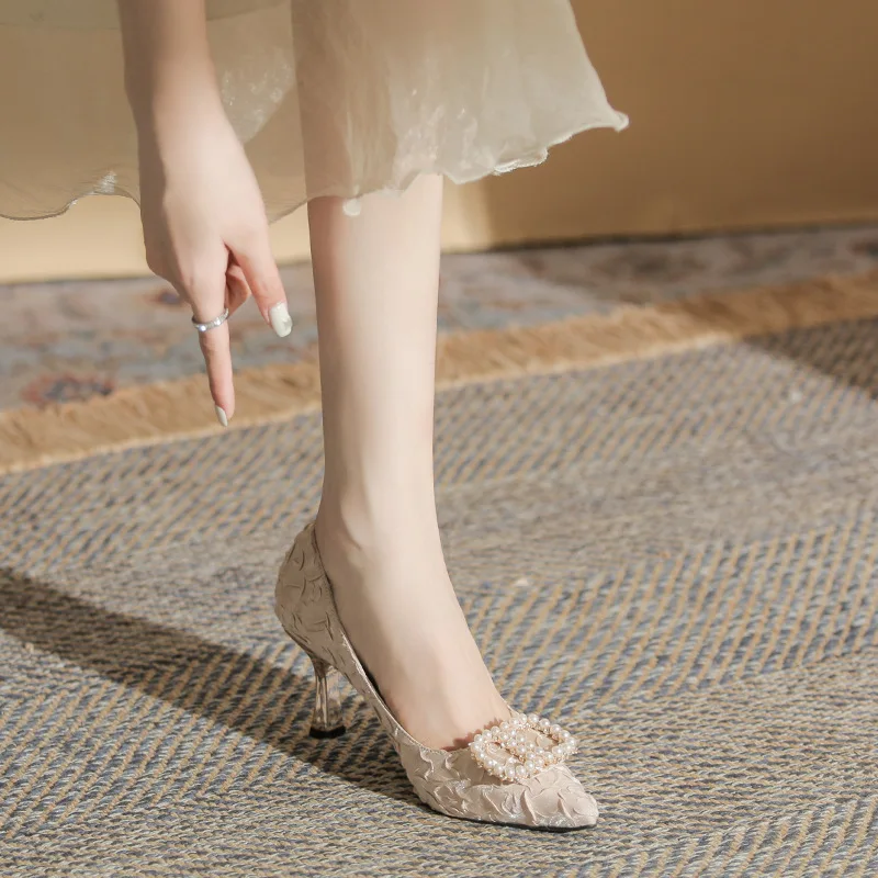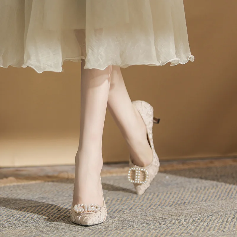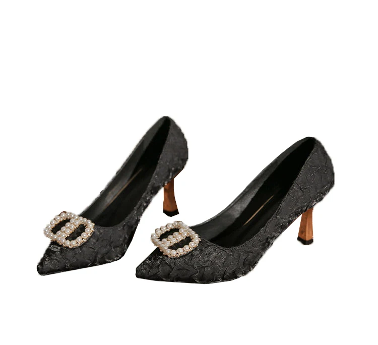 Customized Designer Women's Fine Pearl Buckle Women's Luxury Chinese High Heels Fashion Elegant Exquisite Women's Shoes