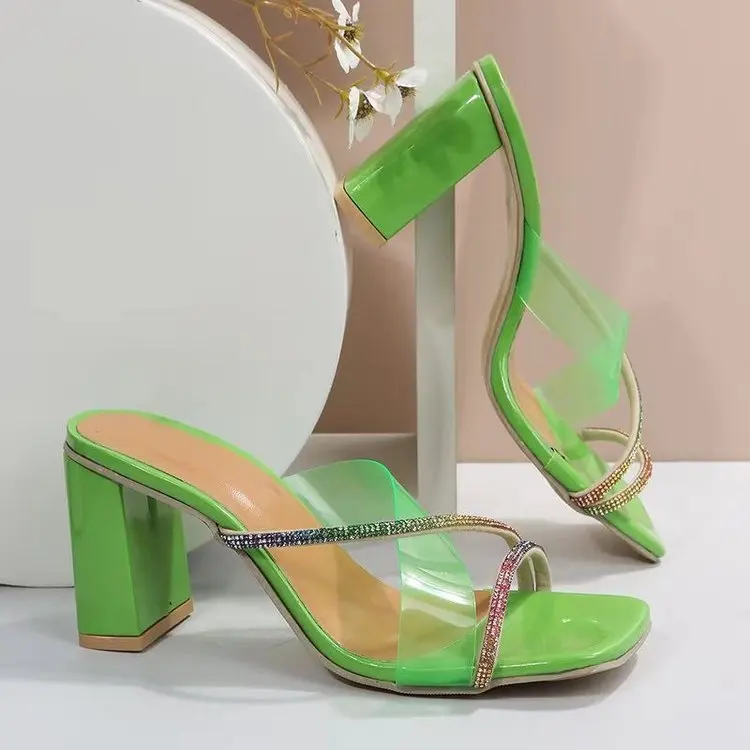 Customized Designer Shoes Transparent Belt Broken Diamond slippers Women's and Women's High Heel slippers Luxury Women's Fashion