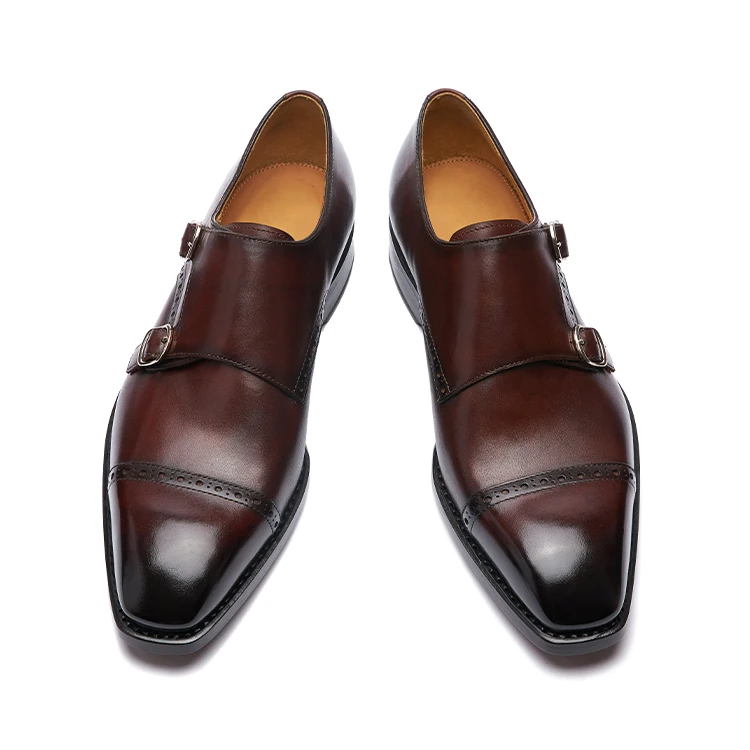 Goodyear Welted Authentic Custom Shoe Slip-On Monk Strap Formal Leather Dress Shoes for Men Italian Genuine Leather