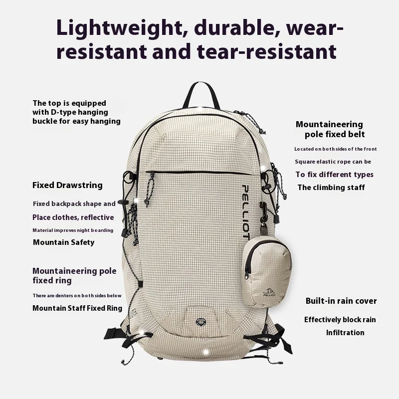Pelliot Lightweight Waterproof Outdoor Hiking Backpack Large Capacity Trekking Bag Polyester for Men Women for Travel School