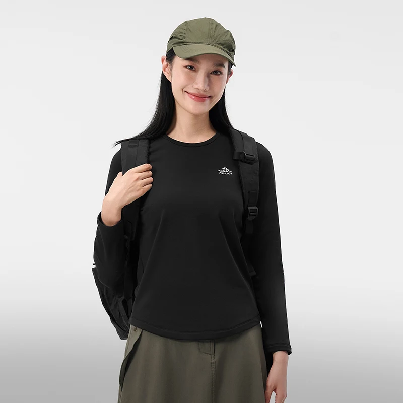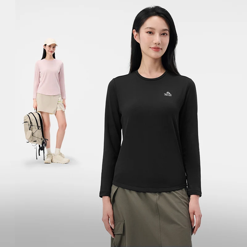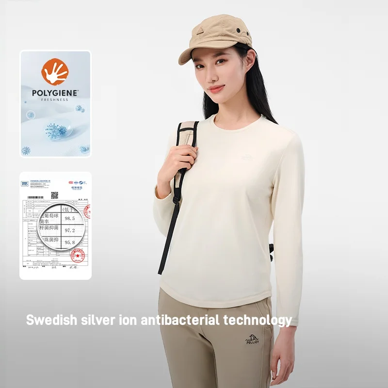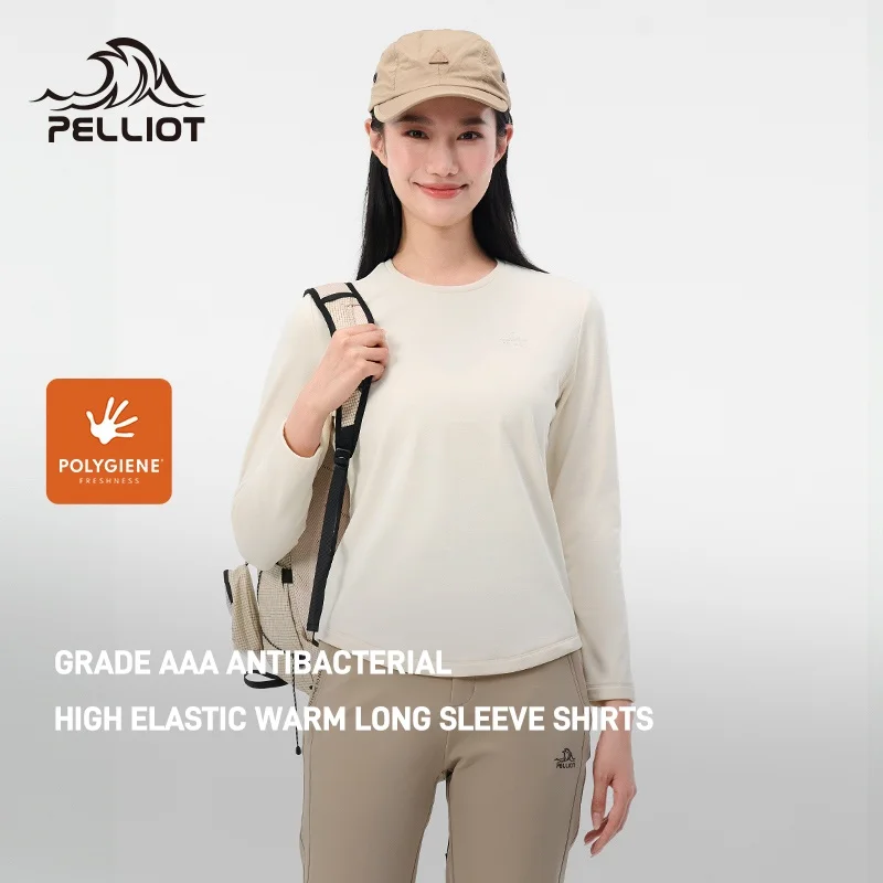 Pelliot 2026 New Female Outdoor Long Sleeve T-Shirt Polygiene Silver Ion Antibacterial High Elastic Velvet Warm Sportswear