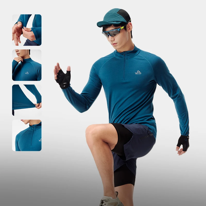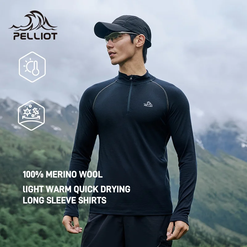 2026 100% Merino Wool Men's Outdoor Sports Jacket for Hiking Casual Quick-Drying T-Shirt With Long Sleeves & Solid Pattern