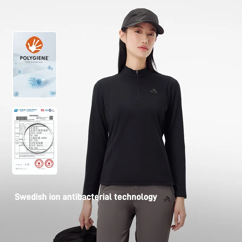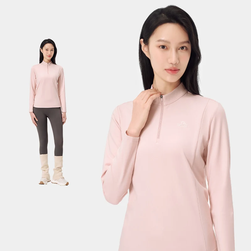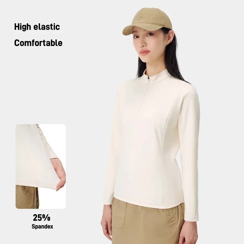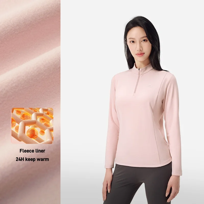 Women's Outdoor Casual Fleece-Lined Long Sleeve T-Shirt 2026 High-Elastic Sports Hiking Antibacterial Liner Shirts
