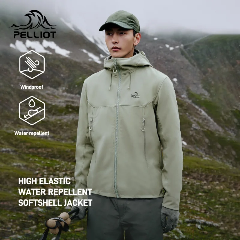 Custom logo OEM ODM Outdoor Windproof Water-repellent Hooded Softshell Jacket Autumn Casual Coat With Zipper Closure for Hiking
