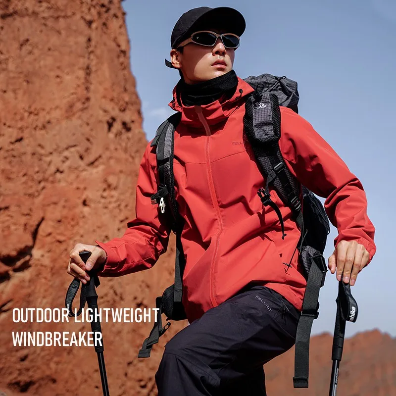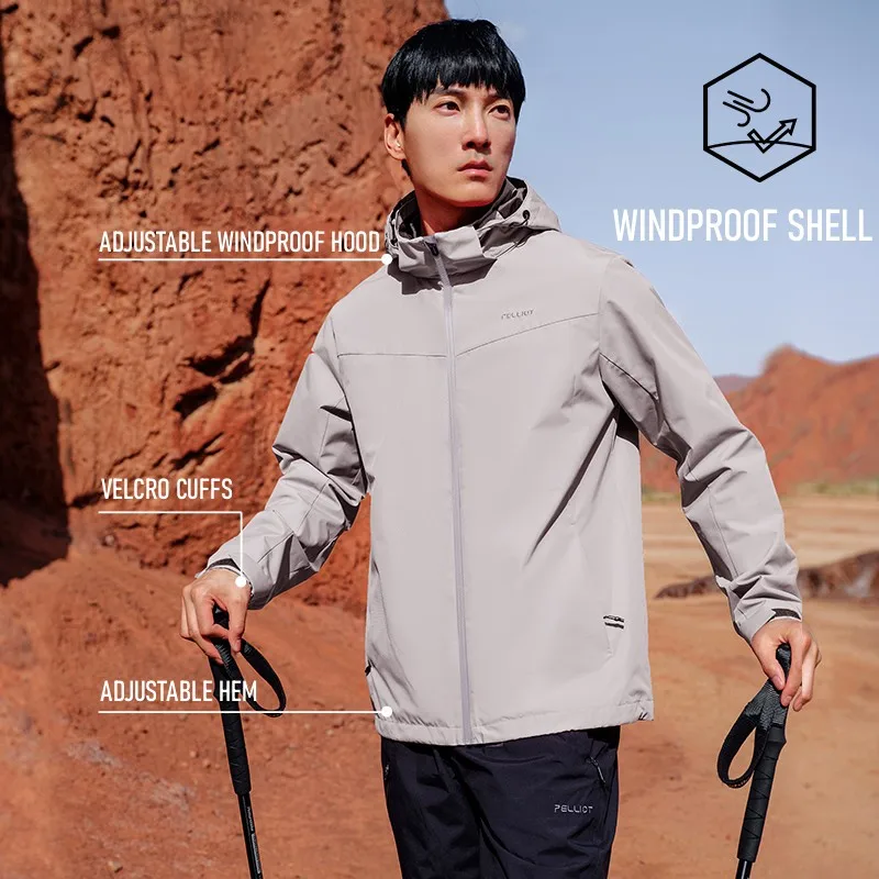 Pelliot Men's Outdoor Mountain Windbreaker Plus Size Water Repellent Wind Coat 2026 New Embroidery 100% Polyester Knitted Hooded